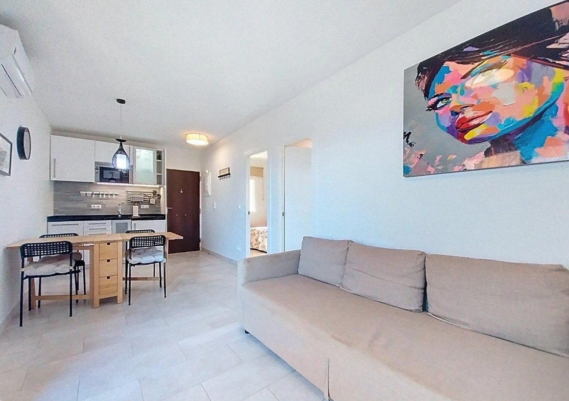 Vidaus erdvės suplanuotos moderniai ir jaukiai: čia įrengta atviro plano virtuvė su visa reikiama įranga, jaukus miegamasis bei vonios kambarys su dušo kabina. Šviesi svetainė sklandžiai jungiasi su privačia terasa – tai ideali vieta poilsiui stebint apylinkes ir mėgaujantis Viduržemio jūros orais. Iš šio aukšto taip pat patenkama į bendruomenės soliariumą – privilegijuotą erdvę, iš kurios atsiveria dar įspūdingesnės panoramos.
