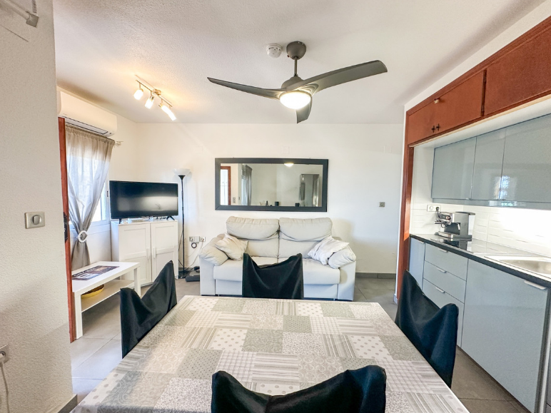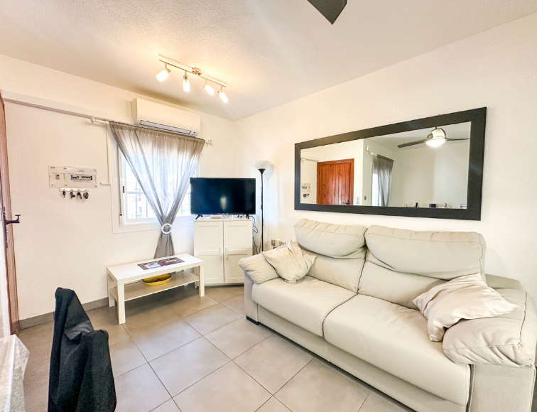 Ieškantiems stilingo, „raktai į rankas“ tipo būsto, šis vieno miegamojo apartamentas „Mirador del Mediterráneo“ komplekse yra tikras radinys. Ką tik atnaujintas ir šiuolaikiškai įrengtas, jis spinduliuoja gaivą, kuri 2026-ųjų nekilnojamojo turto rinkoje vertinama labiausiai – čia nereikia jokių papildomų investicijų, tik jūsų lagaminų.