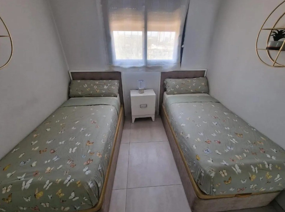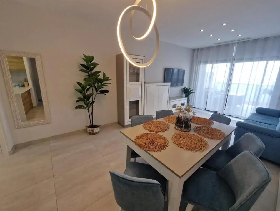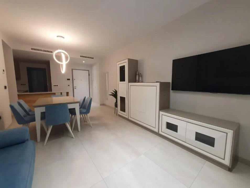 Apartamentas turi 2 miegamuosius, 2 pilnus vonios kambarius, pilnai įrengtą atvirą virtuvę, erdvų ir šviesų saloną su išėjimu į terasą, nuo kurios atsiveria kvapą gniaužiantis Ponientės paplūdimio vaizdas. Į kainą įskaičiuota automobilių stovėjimo vieta ir sandėliukas tame pačiame aukšte. Apartamentas turi turizmo licenciją. Booking.com įvertinimas – 9.4.