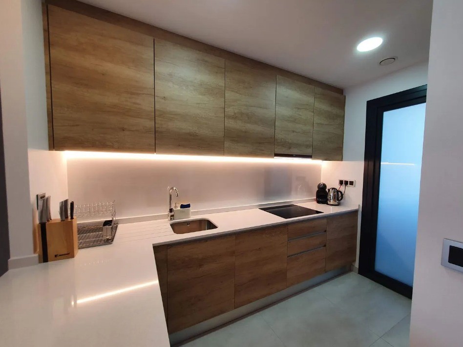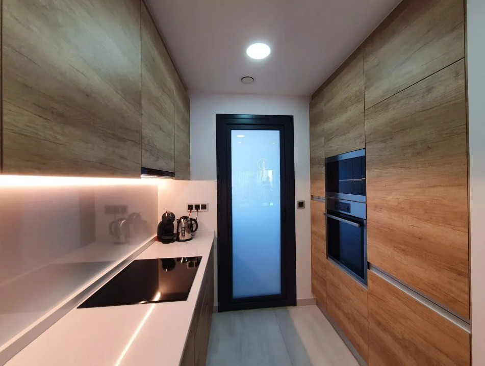 Modernus apartamentas su vaizdu į jūrą, naujame ir elegantiškame gyvenamajame komplekse „Sunset Waves“.