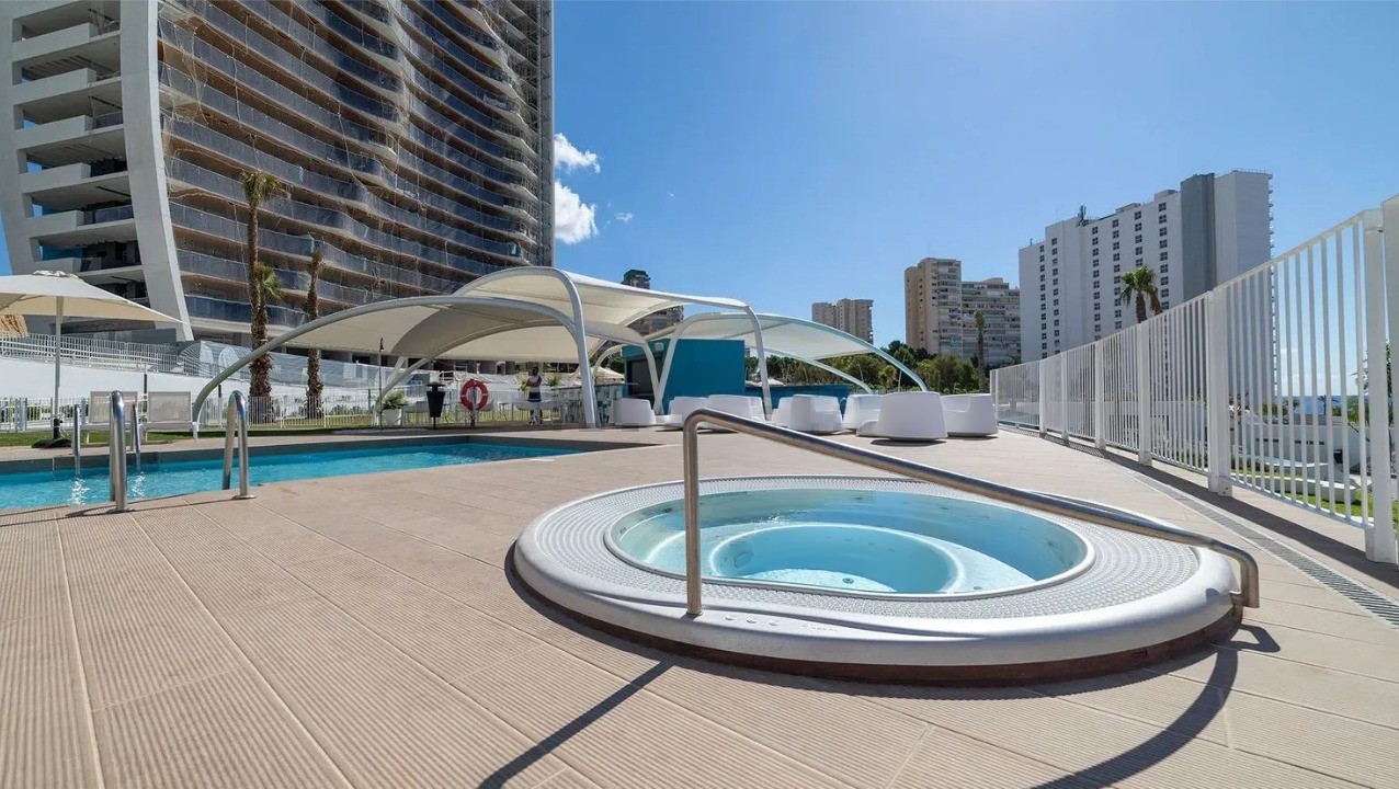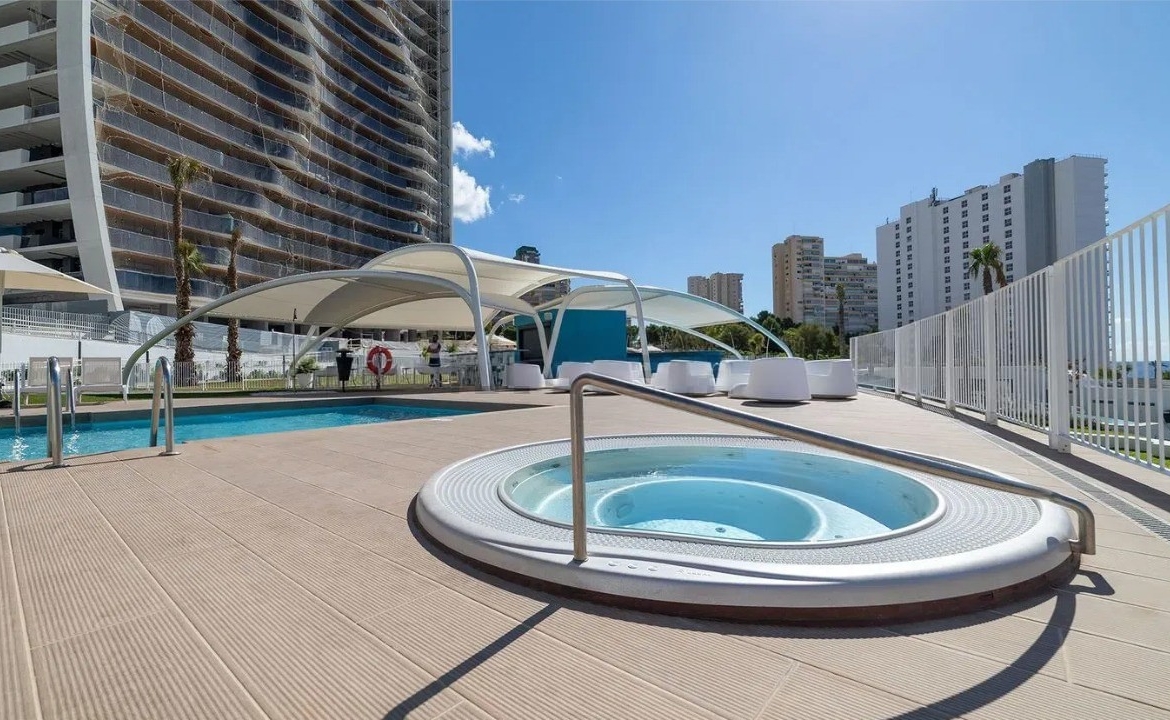 Apartamentas yra privilegijuotoje vietoje, mažiau nei 200 metrų nuo geriausio Benidormo paplūdimio, orientuotas į pietus. Verta pabrėžti išskirtinį pastato dizainą, kuriame harmoningai derinami dideli langai apartamentuose ir erdvios, atviros terasos.
