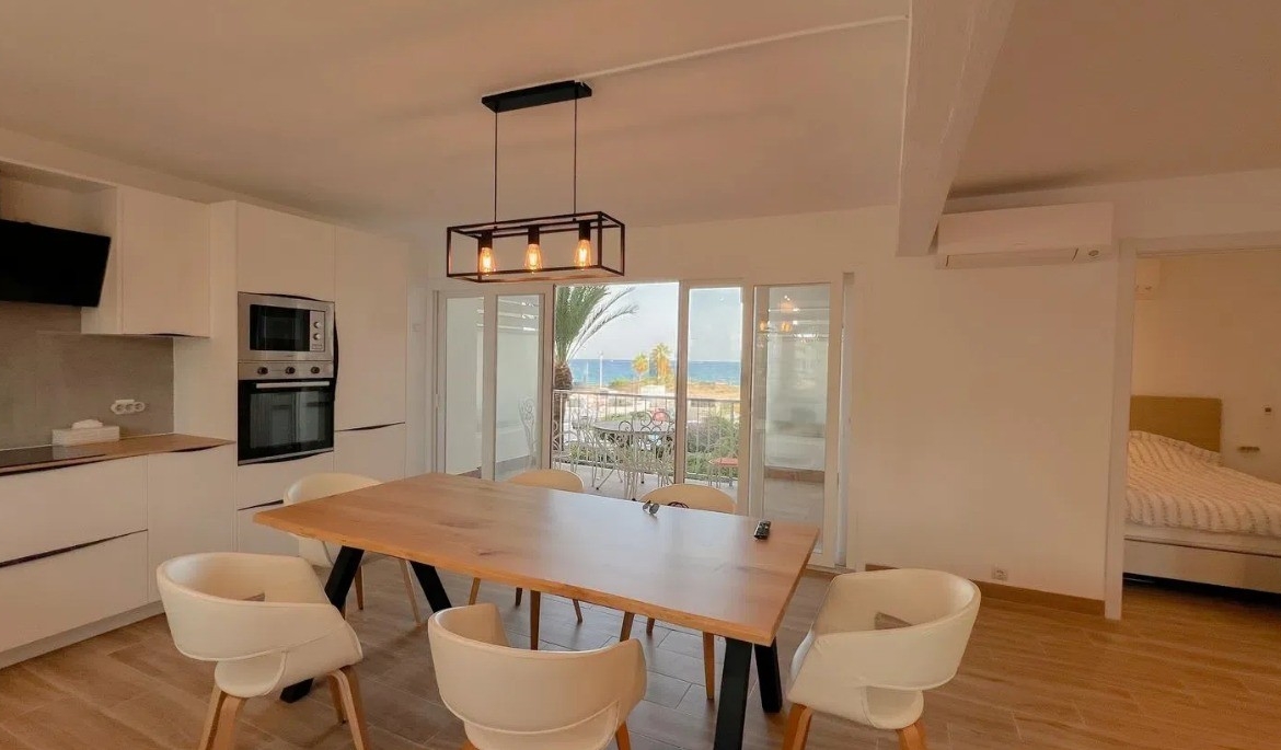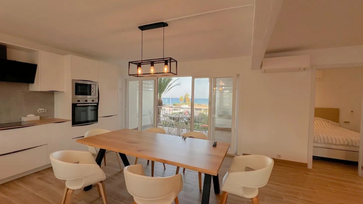 Erdvus, visiškai renovuotas butas, iš kurio atsiveria nuostabus panoraminis vaizdas į jūrą, puikioje vietoje, pačioje Arenal-Bol paplūdimio linijoje, Kalpėje. Dėl pietinės orientacijos butas visą dieną yra pilnas natūralios šviesos, todėl sukuriama šilta ir jauki atmosfera tiek gyvenimui, tiek poilsiui.