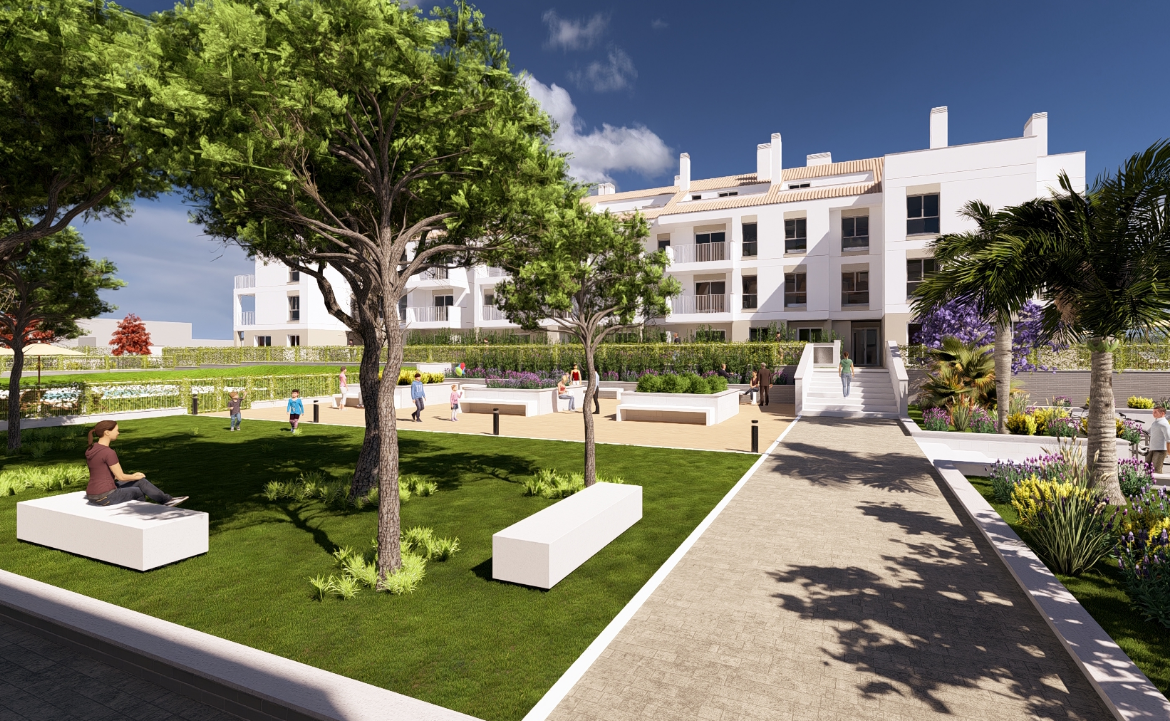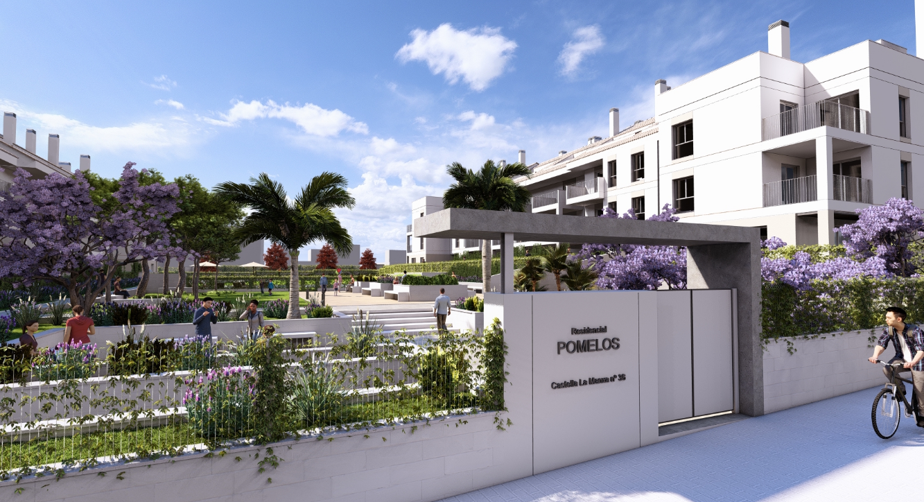 Atraskite naująjį projektą „Residencial Pomelos“, kurį FICSA vystytojas statys Denijoje. Tai 60 apartamentų kompleksas, siūlantis 2 arba 3 miegamųjų butus, bendruomenės baseiną bei žaliąsias erdves. Ramioje vietoje, gamtos apsuptyje įsikūręs projektas pasižymi nuostabiais vaizdais į Montgó kalną – tai ideali vieta džiaugtis gyvenimu su šeima.