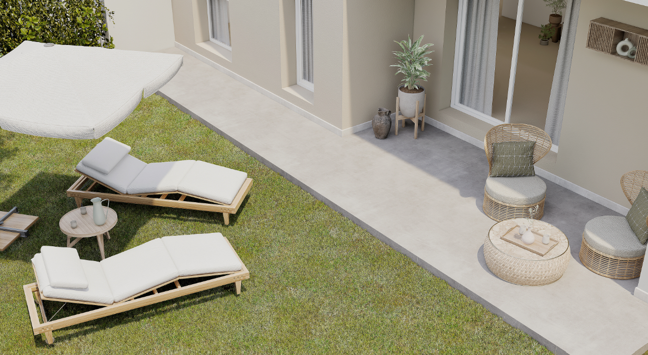 Projekte taip pat siūlomi pirmo aukšto butai su nuosavais sodais. Kiekvienas butas suprojektuotas taip, kad užtikrintų funkcionalų išplanavimą ir maksimaliai efektyvų erdvės išnaudojimą. Aukštos kokybės apdaila kartu su moderniais sprendimais suteiks jūsų kasdienybei dar daugiau komforto.