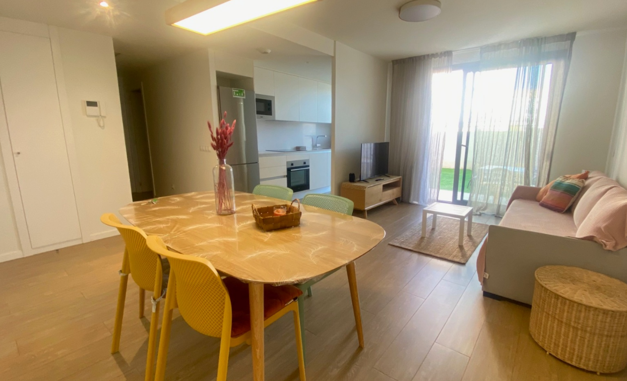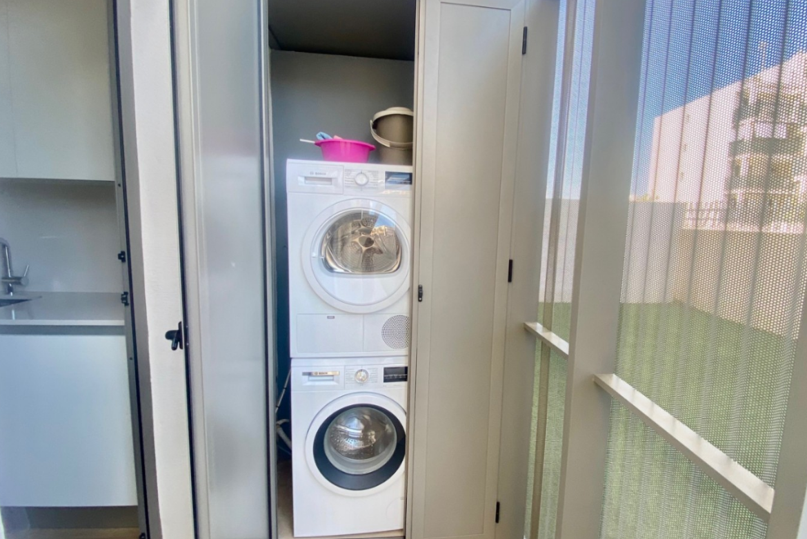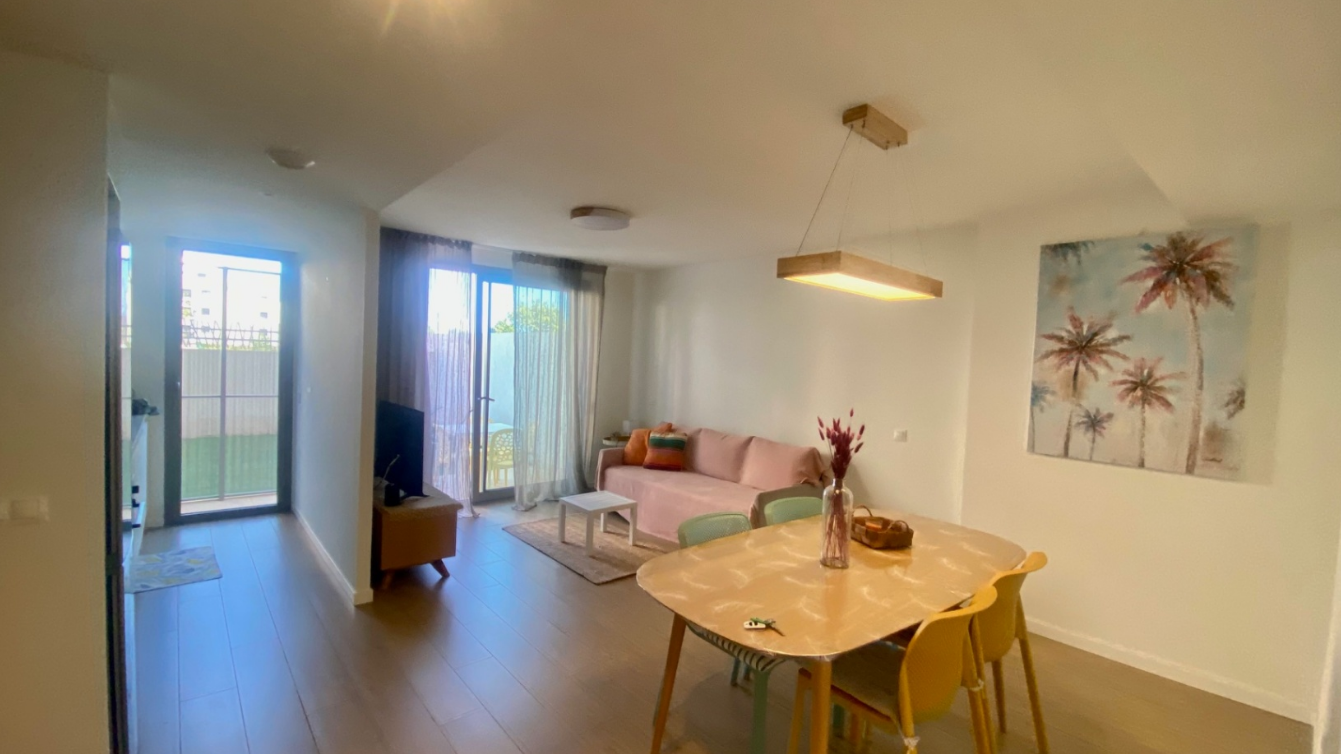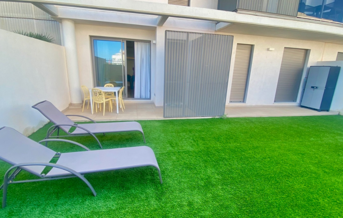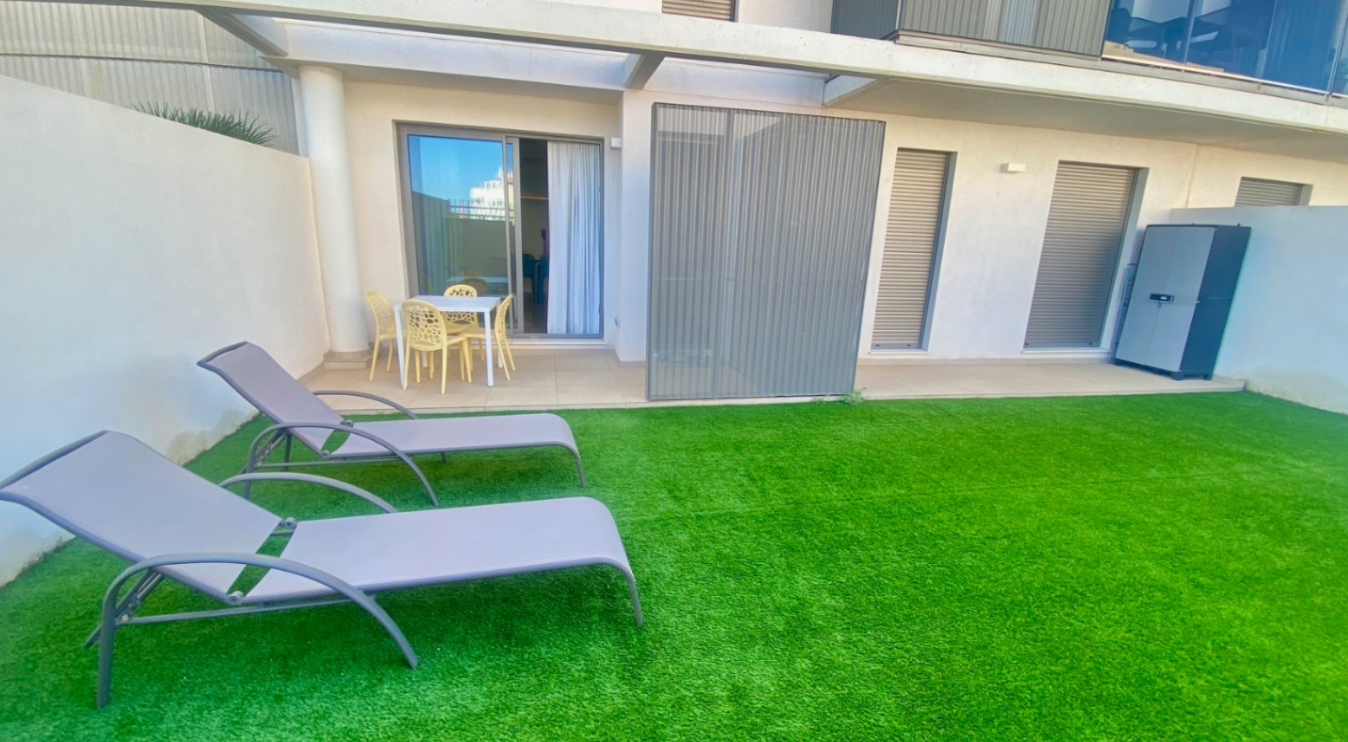 Butas įsikūręs pirmame aukšte, su terasa ir nuosavu 80 m2 sklypu, 2 miegamieji ir 2 vonios kambariai, vienas iš jų su vonios kambariu. Yra patraukli atvira virtuvė ir svetainė-valgomasis. Įrengtas ortakinis oro kondicionierius ir namų automatikos sistema. Yra automobilių stovėjimo aikštelė ir didelė sandėliavimo patalpa.
