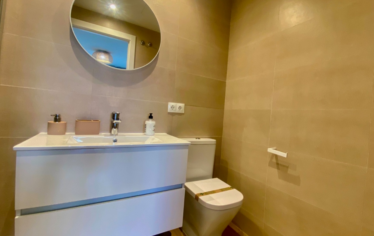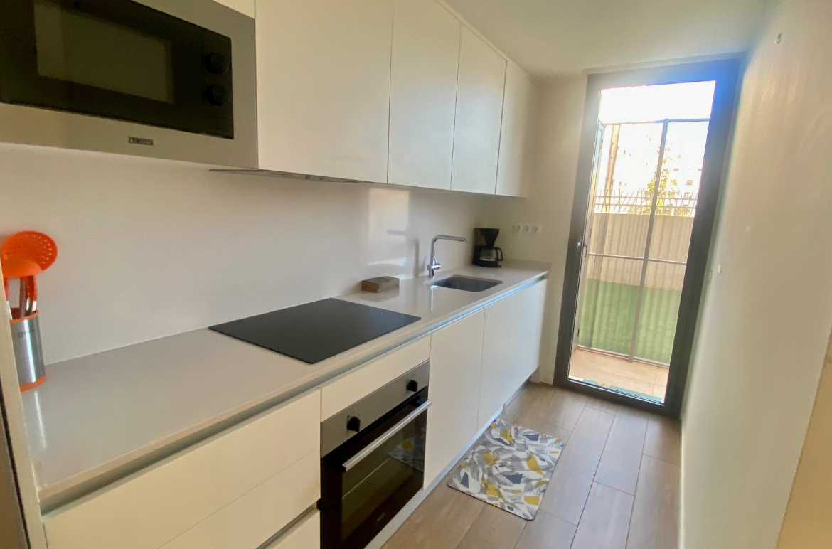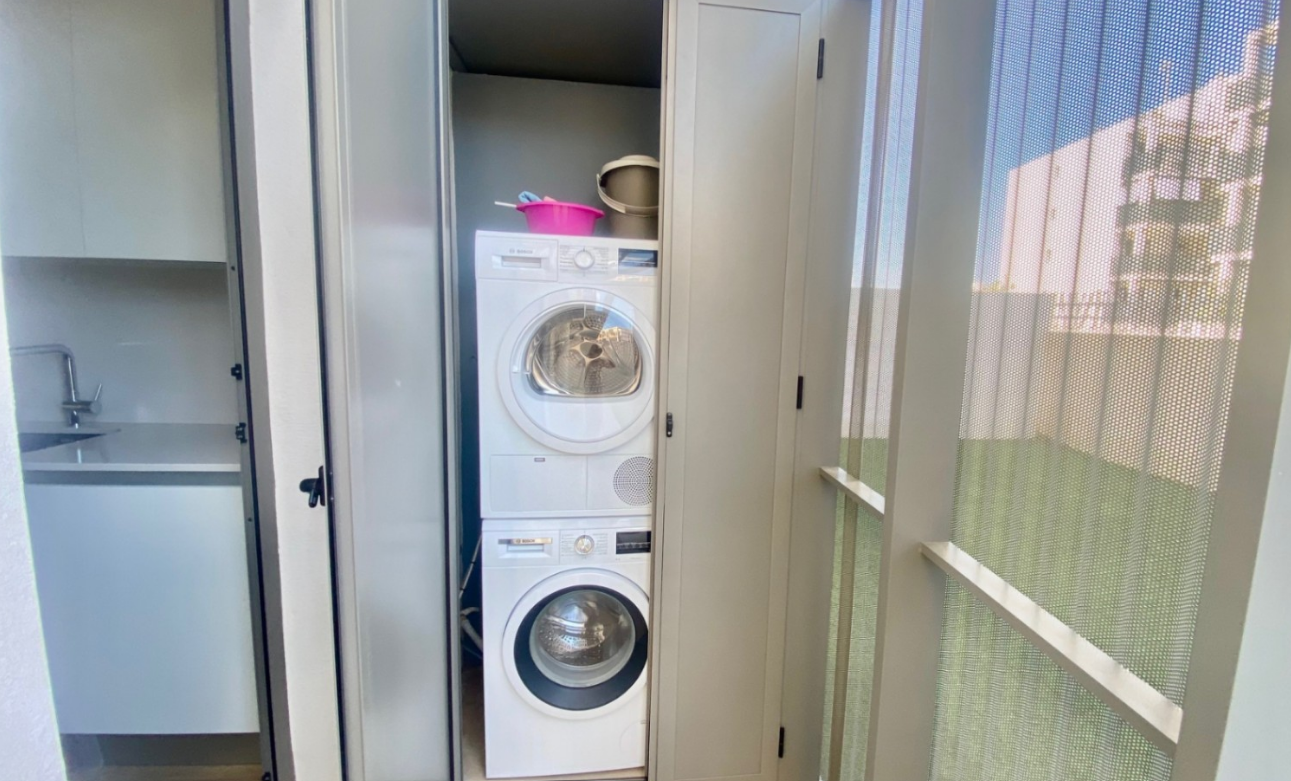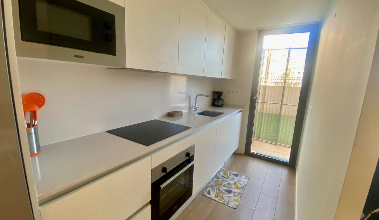 Butas įsikūręs pirmame aukšte, su terasa ir nuosavu 80 m2 sklypu, 2 miegamieji ir 2 vonios kambariai, vienas iš jų su vonios kambariu. Yra patraukli atvira virtuvė ir svetainė-valgomasis. Įrengtas ortakinis oro kondicionierius ir namų automatikos sistema. Yra automobilių stovėjimo aikštelė ir didelė sandėliavimo patalpa.