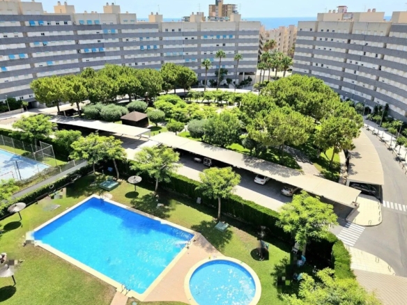 Įsikūręs trečiame pastato su liftu aukšte, šis turtas yra gerai prižiūrimo privataus komplekso dalis su baseinu, bendromis erdvėmis ir praktiškai tiesiogine prieiga prie paplūdimio, esančio vos už 2 metrų. Tikras perlas tiems, kurie ieško gyvenimo prie jūros arba antrų namų su visais patogumais.