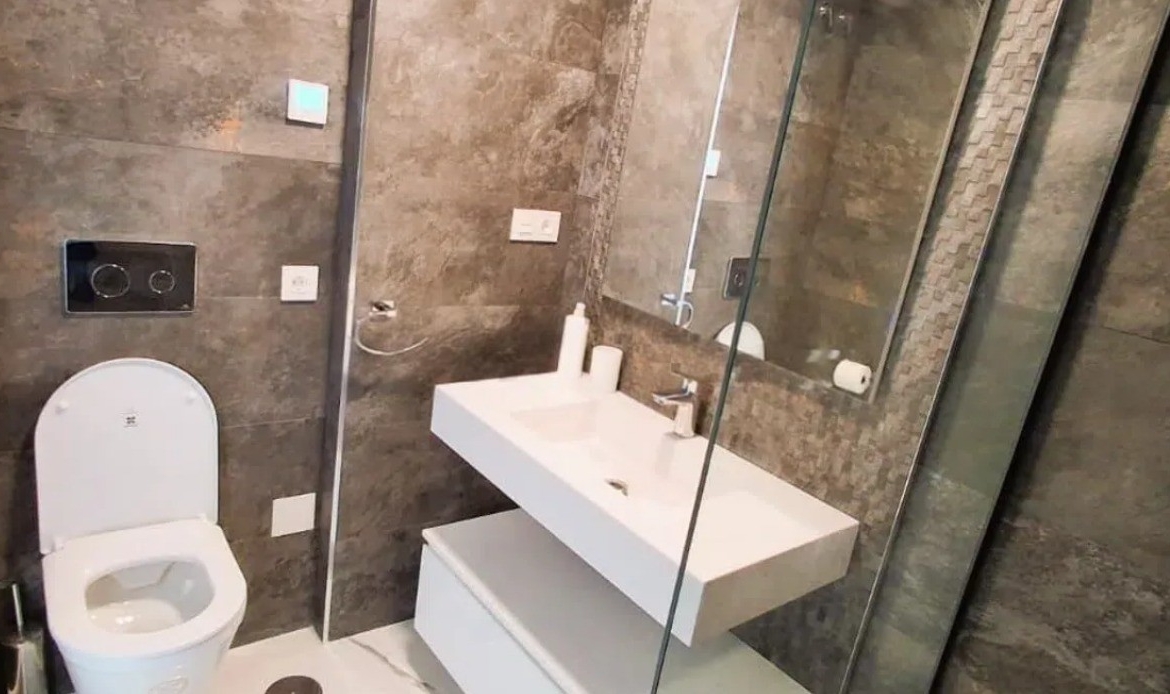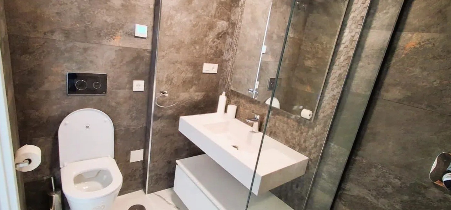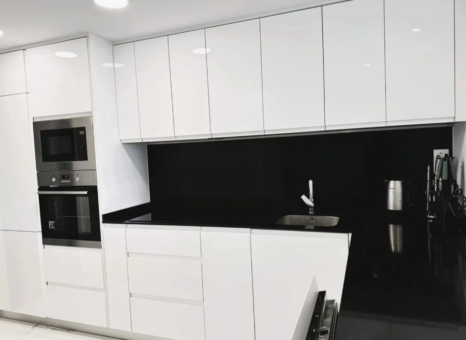 Įėjus į butą, randame didelį kambarį su virtuve, moderniais ir aukštos kokybės baldais, pilnai įrengta visa buitine technika ir prieiga prie galerijos. Toliau – svetainė su gerai atskirta valgomojo zona, o pačioje svetainėje yra durys, vedančios į maždaug 12 m2 terasą su vaizdu į jūrą.