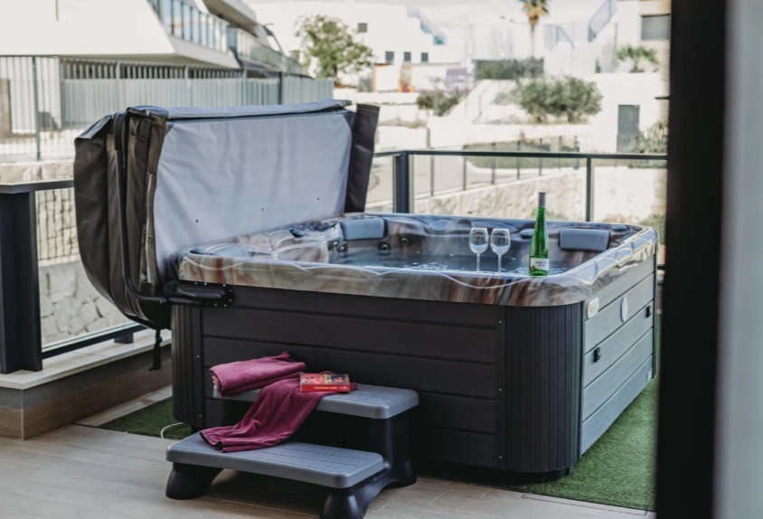 - Socialinė zona: Atviro plano koncepcija apjungia pilnai įrengtą virtuvę, valgomąjį ir svetainę. Iš šios erdvės žengiama tiesiai į pagrindinį namų akcentą – didžiulę terasą su nuosava masažine vonia (jacuzzi).
