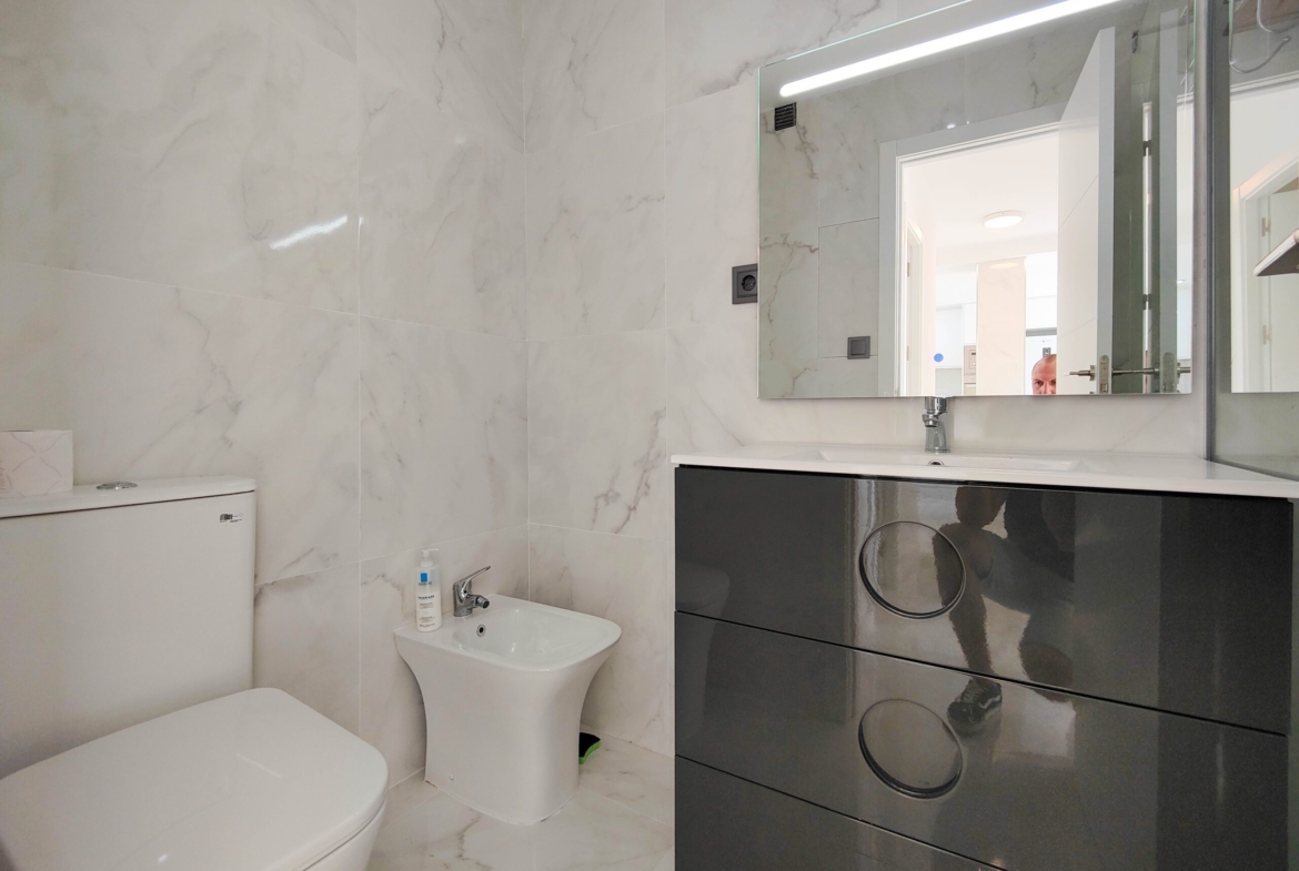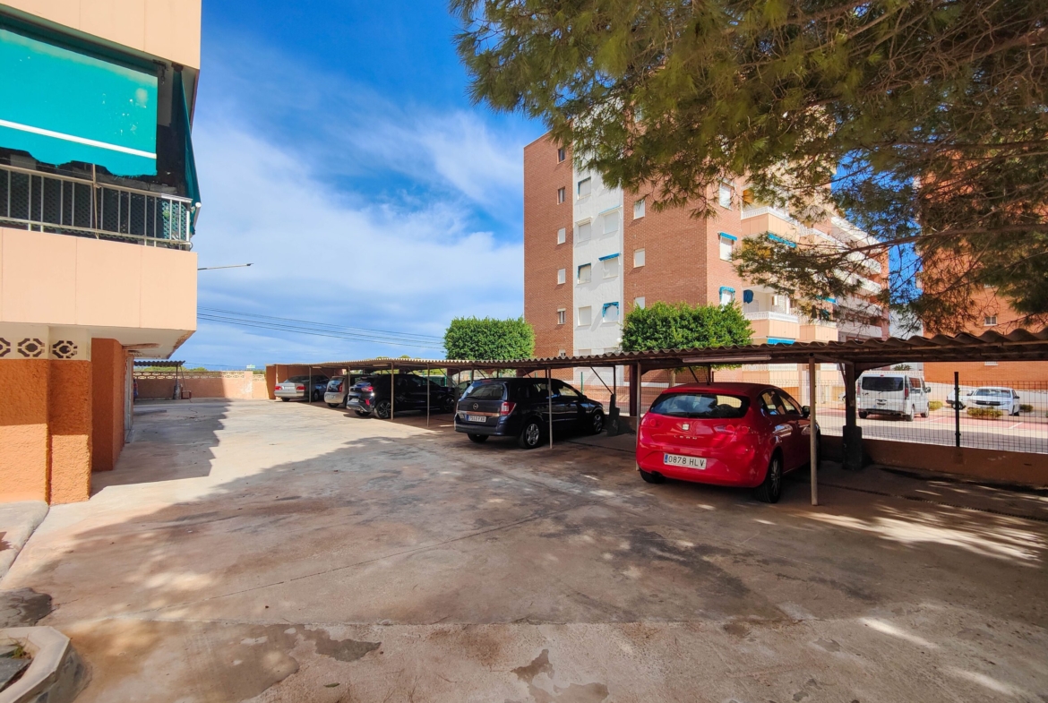 Beautiful completely renovated south facing apartment with views over the swimming pool for sale in Rocío del Mar – Punta Prima – Torrevieja. Located in a building with elevator, covered and fenced parking for residents and a huge communal swimming pool with lifeguard. Very well kept building, recently reinforced.