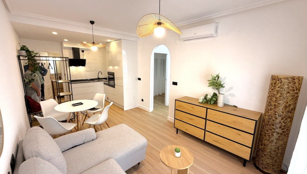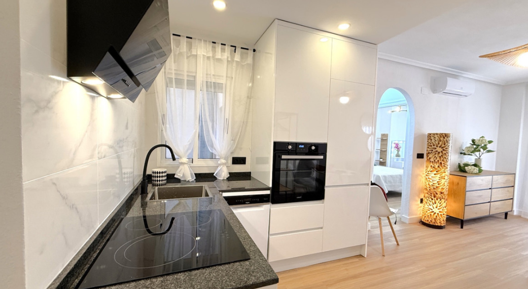 Gražus ir visiškai atnaujintas 2 miegamųjų, 1 vonios kambario butas Calle Villa Madrid gatvėje, vos už kelių žingsnių nuo miesto centro ir gyvybingos prieplaukos.