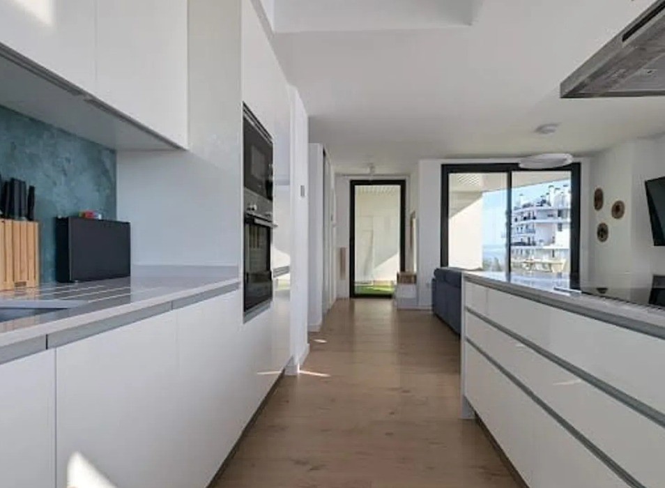 Apartamentas yra 100 m² bendro ir 80 m² naudingo ploto, jame yra 2 erdvūs miegamieji, 2 modernūs vonios kambariai ir atvira virtuvė, puikiai integruota su šviesiu salonu. Iš čia pateksite į didelę terasą, kurioje galėsite mėgautis įspūdingais vaizdais į jūrą ir atsipalaiduoti gryname ore.