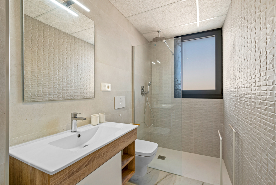 Butas parduodamas su visais baldais, jį sudaro erdvi svetainės/valgomojo zona, moderni atviro plano pilnai įrengta virtuvė, du miegamieji su įmontuotomis spintomis, du vonios kambariai (vienas iš jų yra su vonia). Iš svetainės atsiveria terasos durys į privačią terasą, kurioje galėsite mėgautis Ispanijos saule visą dieną. Į kainą taip pat įskaičiuota automobilio stovėjimo vieta ir sandėliavimo patalpa požeminiame garaže.