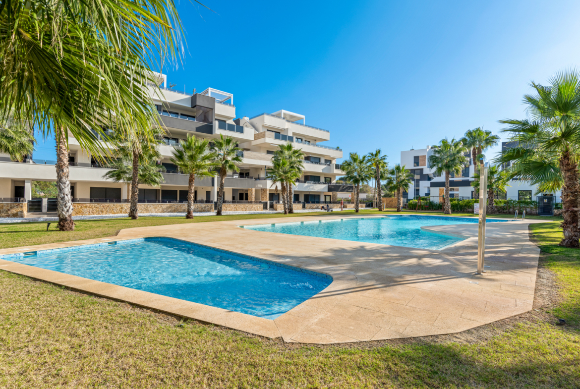 Modernus, prabangus kampinis butas antrame aukšte su 2 miegamaisiais ir didele privačia terasa labai paklausiame Villamartin rajone, Orihuela Costa mieste.