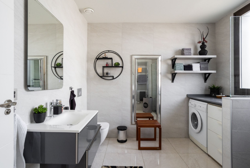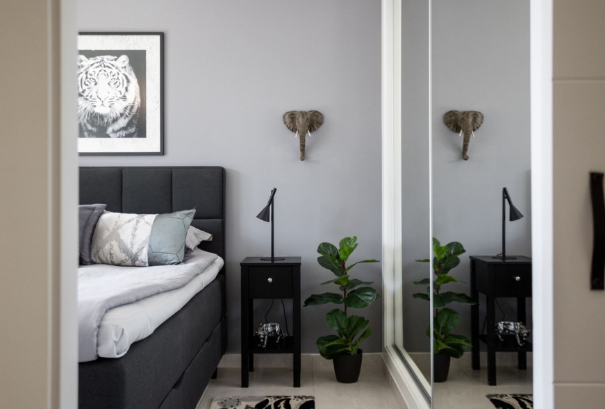Du miegamieji yra šviesūs ir ramūs, juose yra įmontuotos spintos, kuriose patogu laikyti daiktus. Vienas iš kambarių šiuo metu naudojamas kaip darbo kambarys, tačiau jį galima lengvai įrengti kaip svečių arba vaikų kambarį. Abu vonios kambariai iškloti plytelėmis, su dušu, tualetu ir komoda.