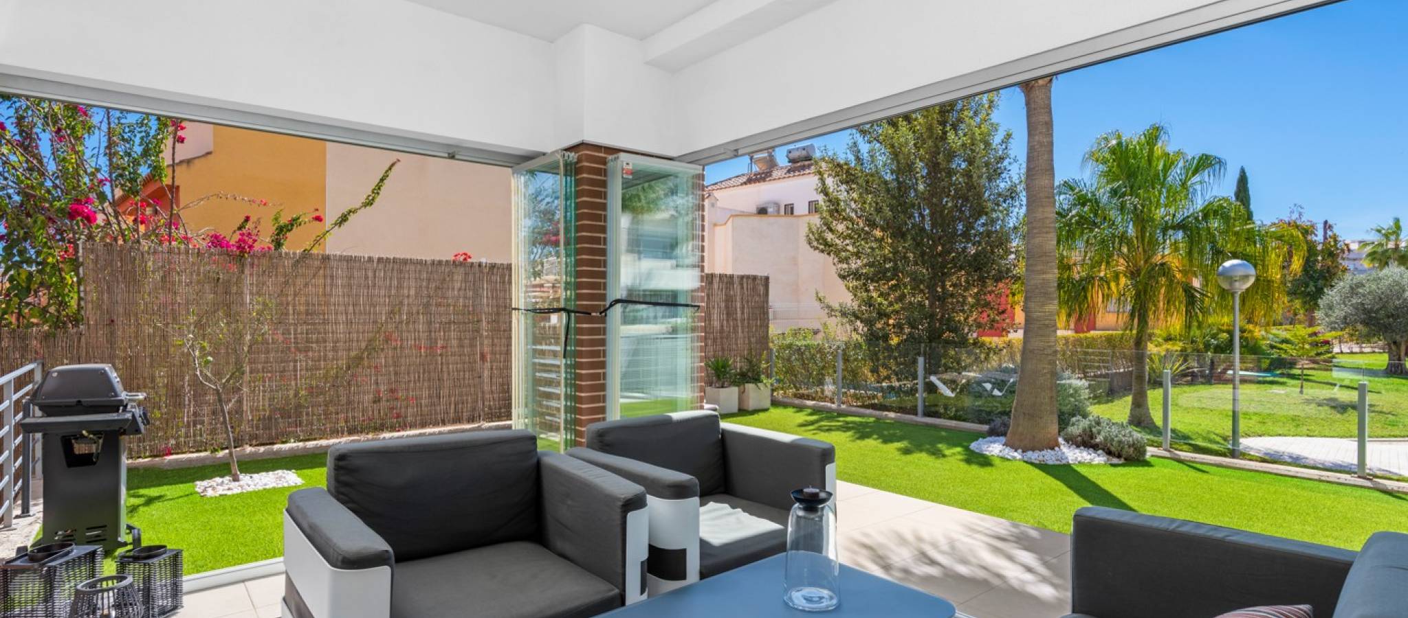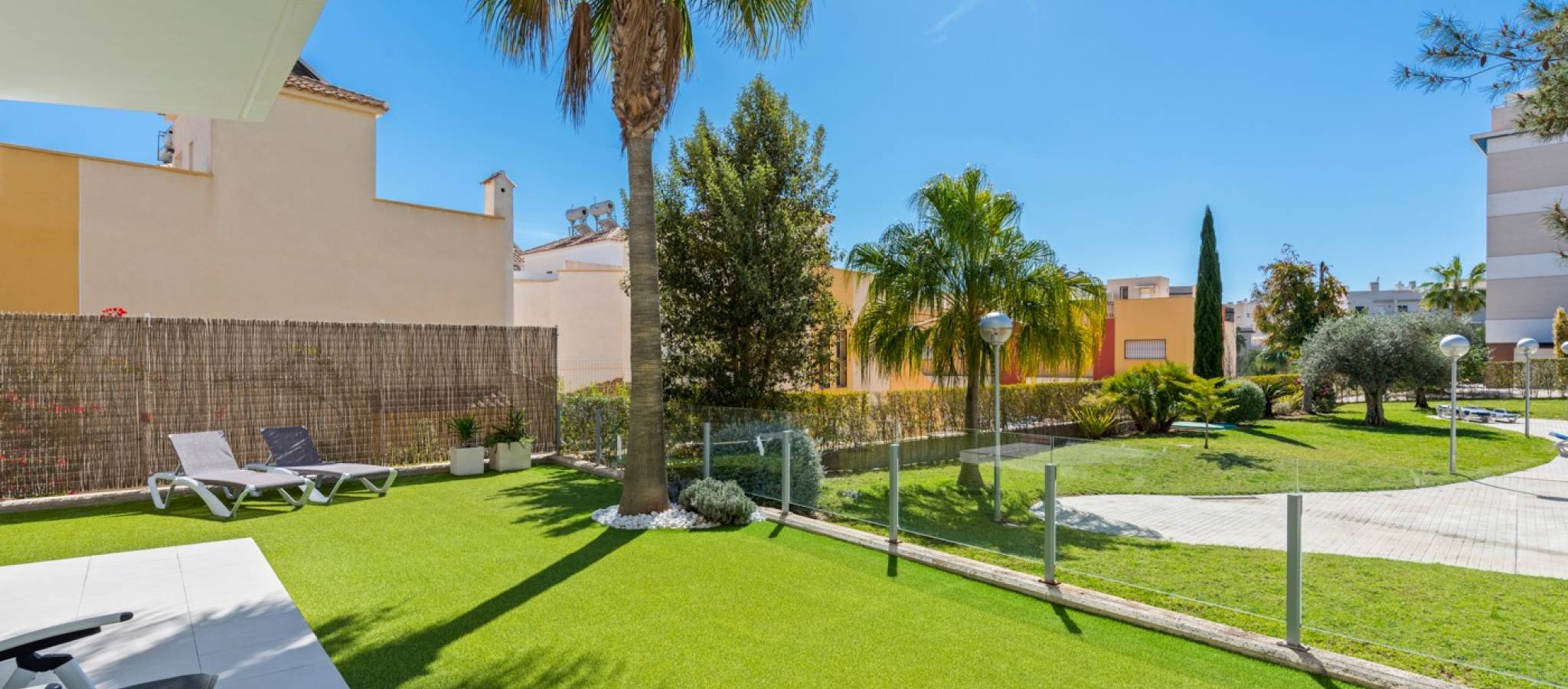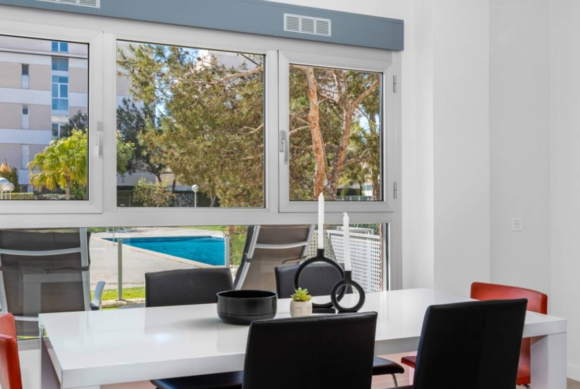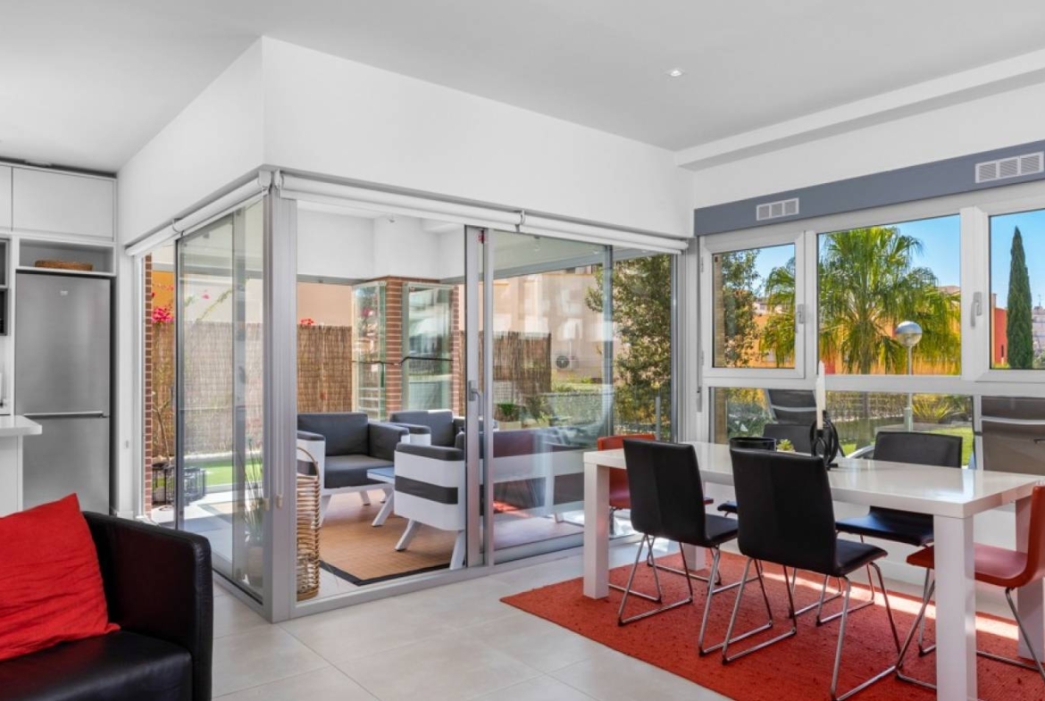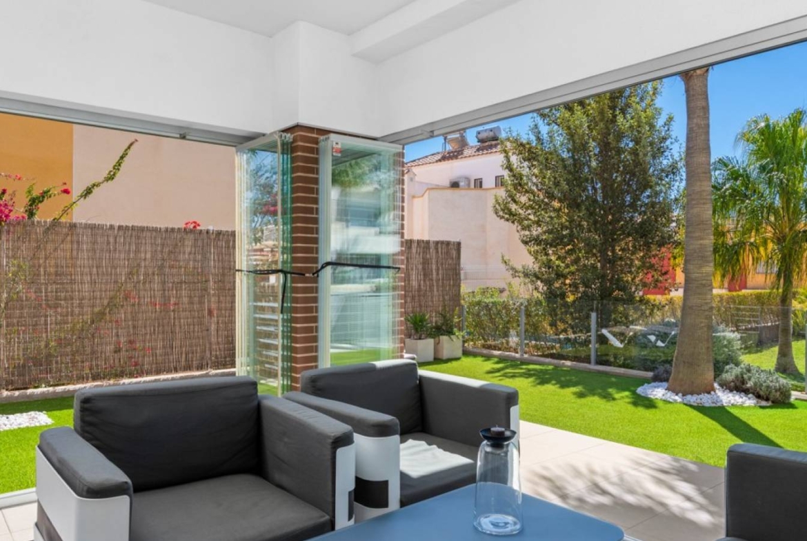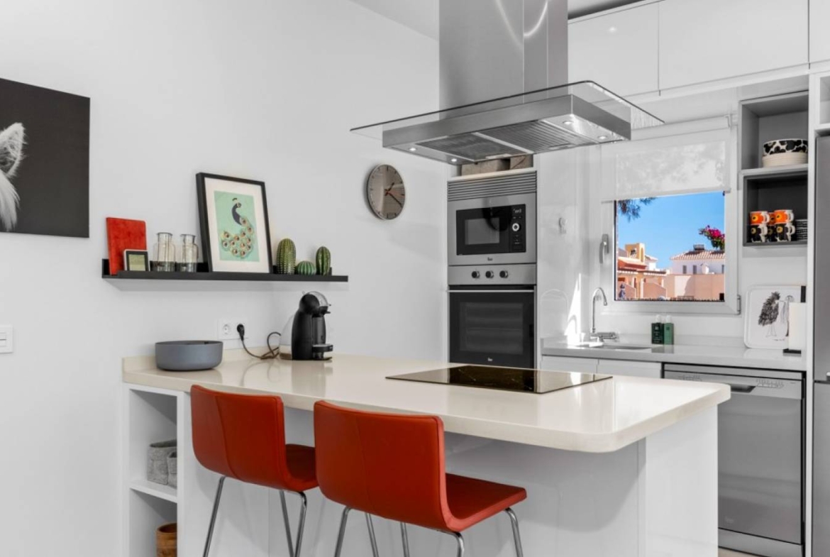 Šie šiuolaikiški, pirmojo aukšto apartamentai Los Dolses rajone, Orihuela Costa pakrantėje, yra idealus pasirinkimas tiems, kurie ieško balanso tarp prabangaus interjero ir erdvios asmeninės lauko zonos. Įsikūrę uždarame ir saugiame „Mirador de Villamartin“ komplekse, jie siūlo retą privalumą – didelį, kruopščiai prižiūrimą privatų sodą, kuris juosia namus iš priekio ir šono.