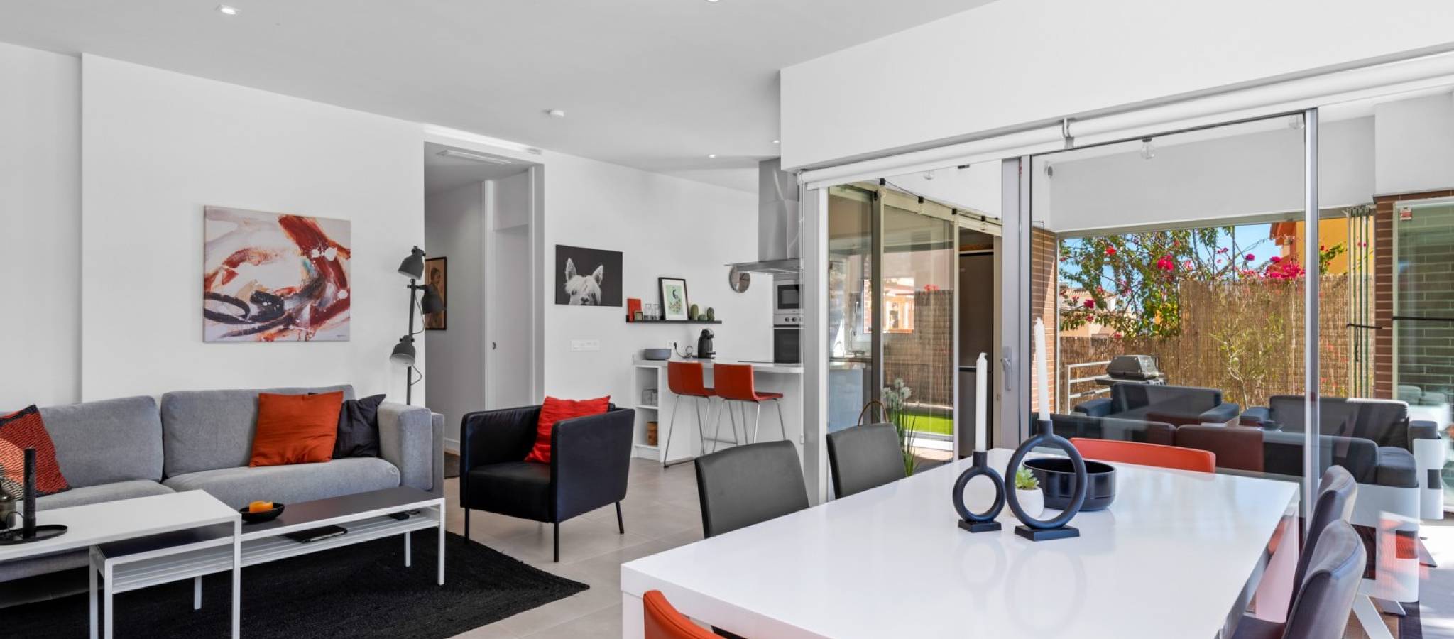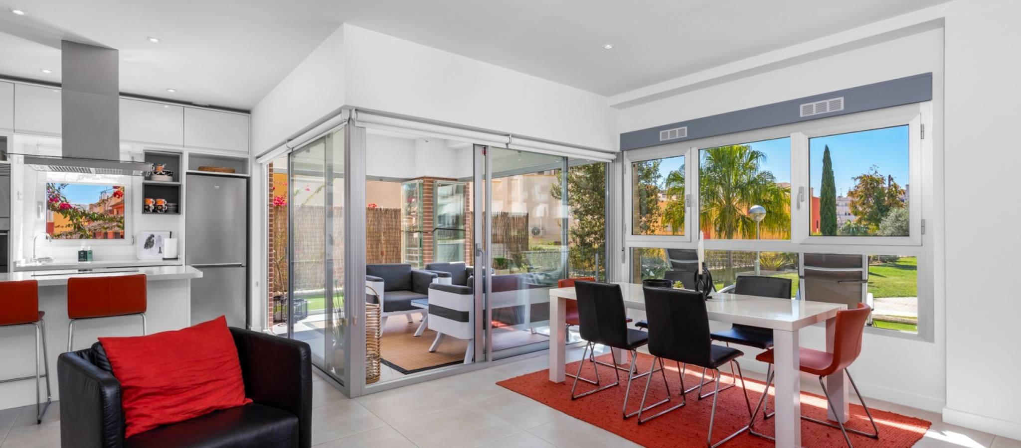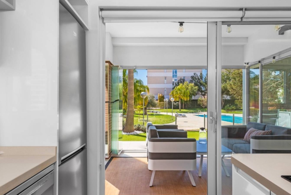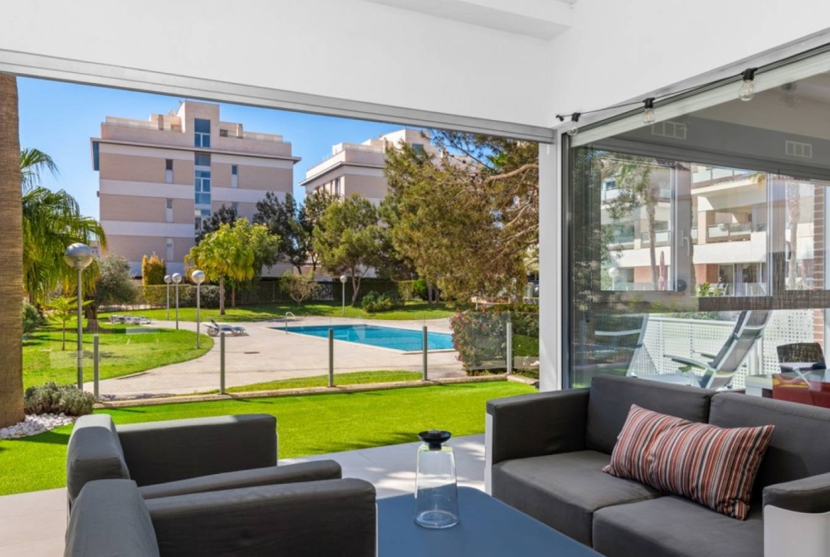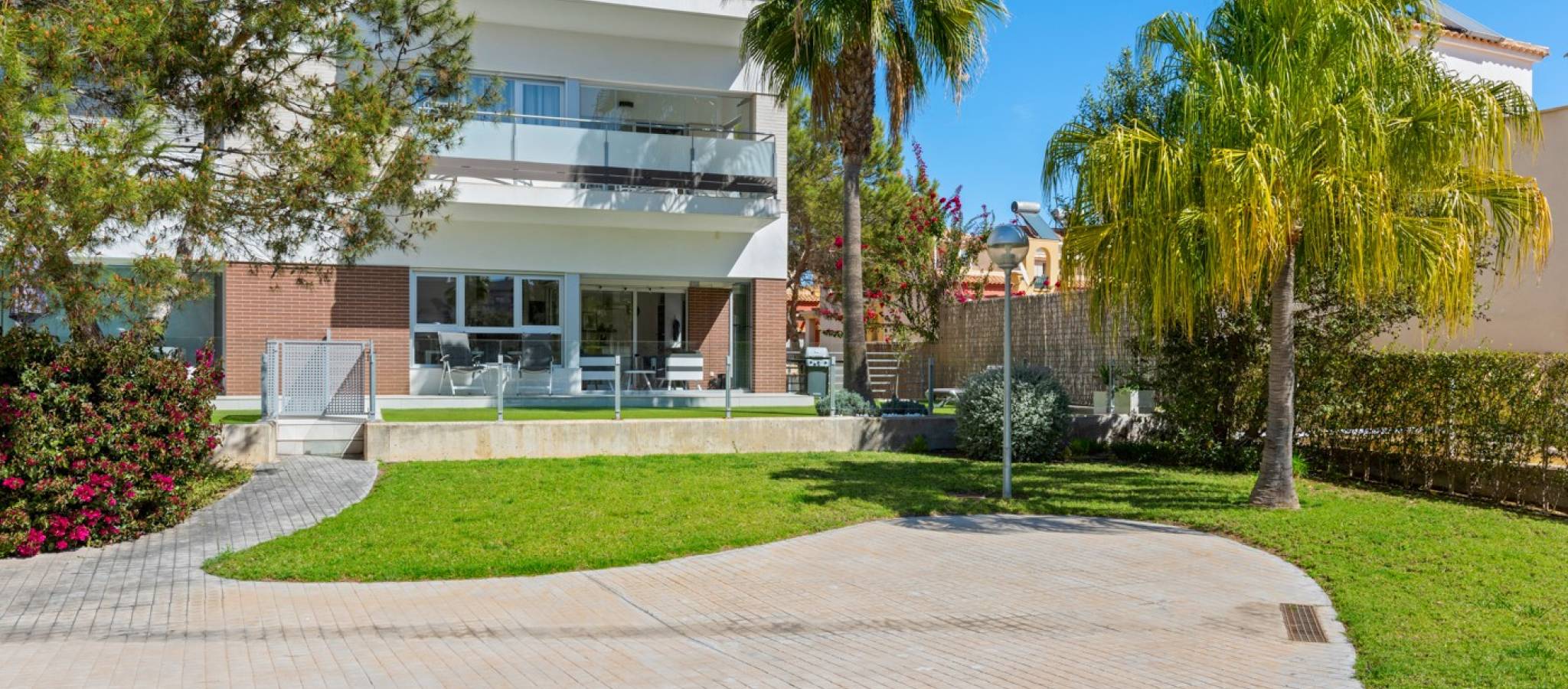 Šie šiuolaikiški, pirmojo aukšto apartamentai Los Dolses rajone, Orihuela Costa pakrantėje, yra idealus pasirinkimas tiems, kurie ieško balanso tarp prabangaus interjero ir erdvios asmeninės lauko zonos. Įsikūrę uždarame ir saugiame „Mirador de Villamartin“ komplekse, jie siūlo retą privalumą – didelį, kruopščiai prižiūrimą privatų sodą, kuris juosia namus iš priekio ir šono.