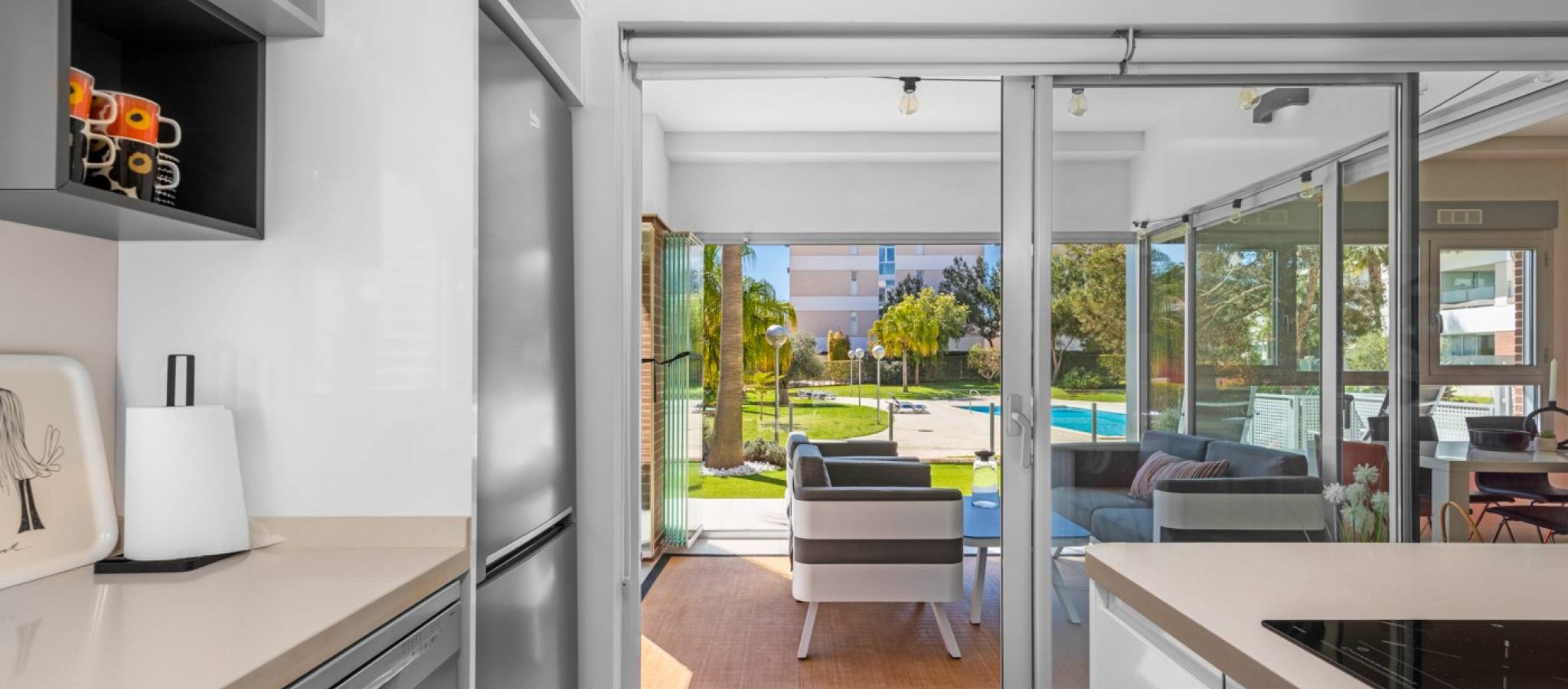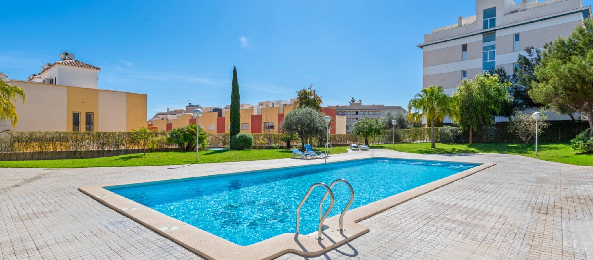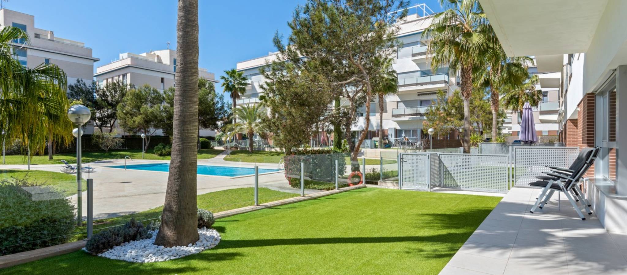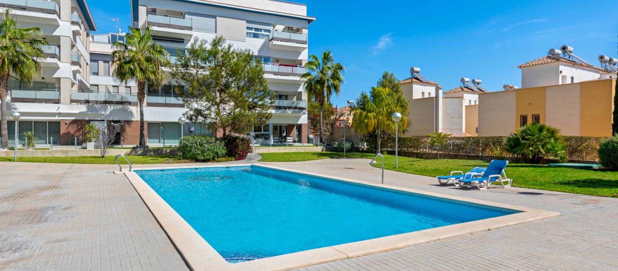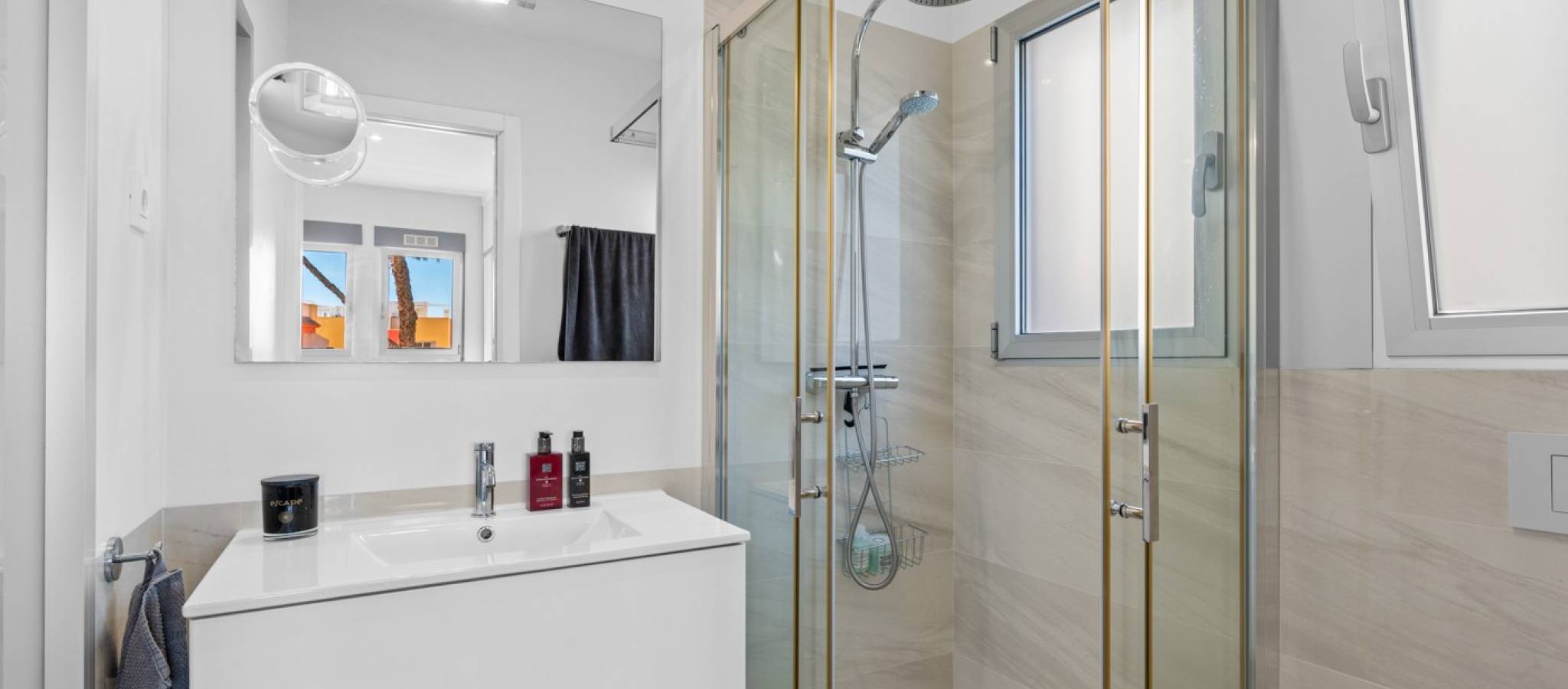 Šie šiuolaikiški, pirmojo aukšto apartamentai Los Dolses rajone, Orihuela Costa pakrantėje, yra idealus pasirinkimas tiems, kurie ieško balanso tarp prabangaus interjero ir erdvios asmeninės lauko zonos. Įsikūrę uždarame ir saugiame „Mirador de Villamartin“ komplekse, jie siūlo retą privalumą – didelį, kruopščiai prižiūrimą privatų sodą, kuris juosia namus iš priekio ir šono.