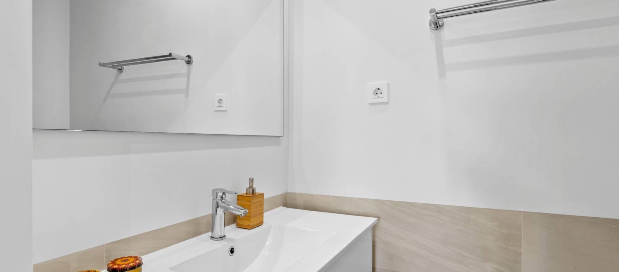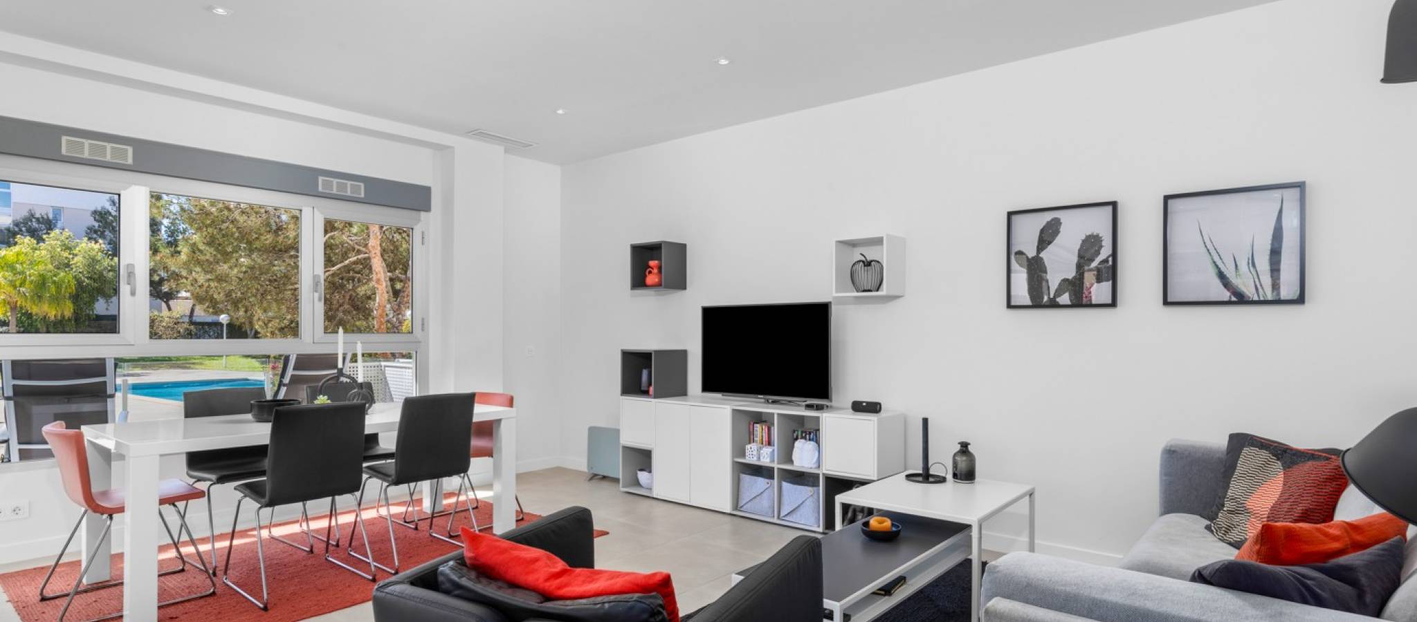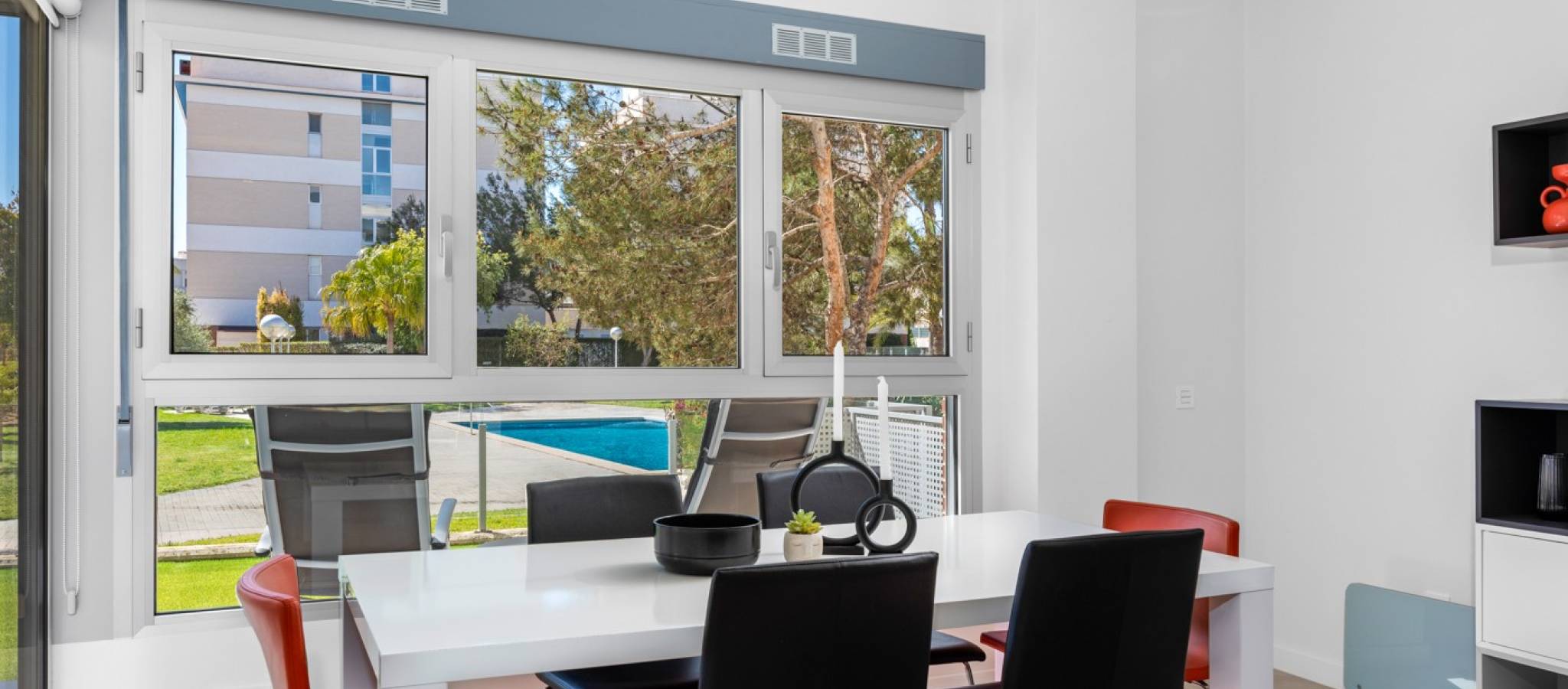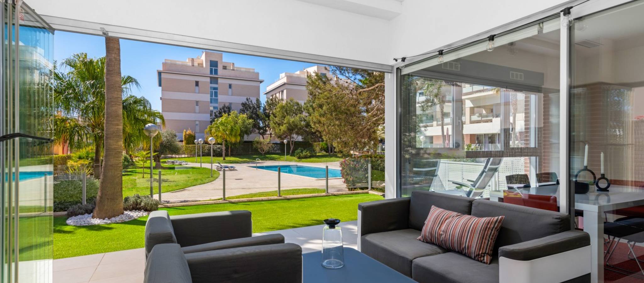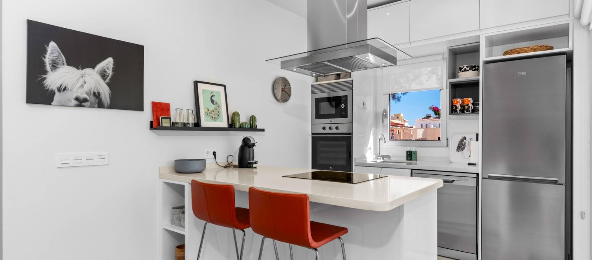 Šie šiuolaikiški, pirmojo aukšto apartamentai Los Dolses rajone, Orihuela Costa pakrantėje, yra idealus pasirinkimas tiems, kurie ieško balanso tarp prabangaus interjero ir erdvios asmeninės lauko zonos. Įsikūrę uždarame ir saugiame „Mirador de Villamartin“ komplekse, jie siūlo retą privalumą – didelį, kruopščiai prižiūrimą privatų sodą, kuris juosia namus iš priekio ir šono.