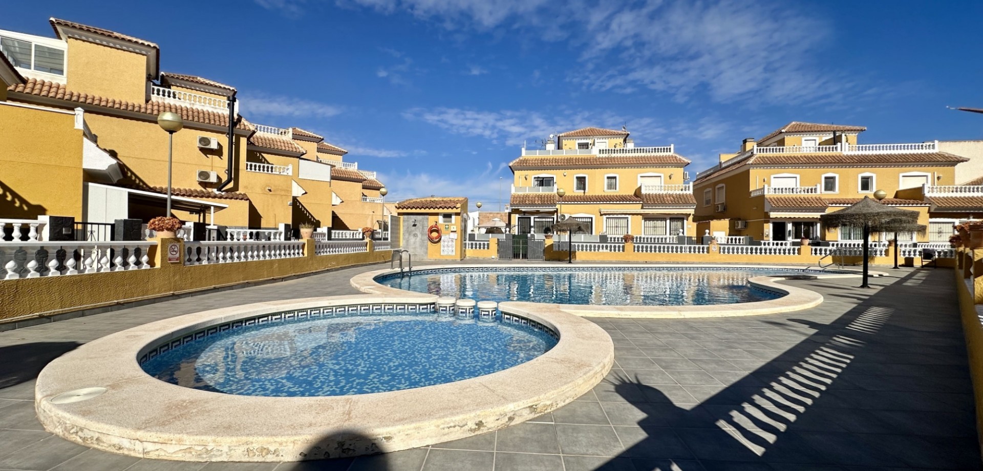 Šis puikus dviejų aukštų blokuotas namas (vila) pasižymi 167 m² bendru plotu ir 116 m² naudinga gyvenamąja erdve. Turtas įsikūręs ramioje ir saugioje rezidencijoje, kurioje gyventojai gali mėgautis bendruomenės baseinu bei kruopščiai prižiūrimomis žaliosiomis zonomis.