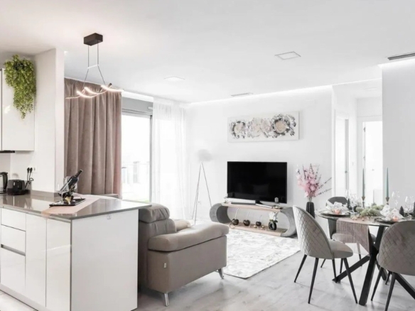 Pristatome aukščiausios klasės nekilnojamojo turto objektą vienoje geidžiamiausių Orihuela Costa vietų – uždarame ir saugomame „Villamartin Gardens“ komplekse. Šis 98 m2 ploto viršutinio aukšto būstas idealiai suderina Viduržemio jūros regiono gyvenimo būdą, visišką privatumą ir puikiai išvystytą infrastruktūrą. Strateginė lokacija užtikrina aukštą turto likvidumą: vos kelios minutės iki „Zenia Boulevard“ prekybos centro, prestižinių Villamartín golfo laukų bei geriausių vietos restoranų, o smėlėti paplūdimiai automobiliu pasiekiami vos per 5 minutes.