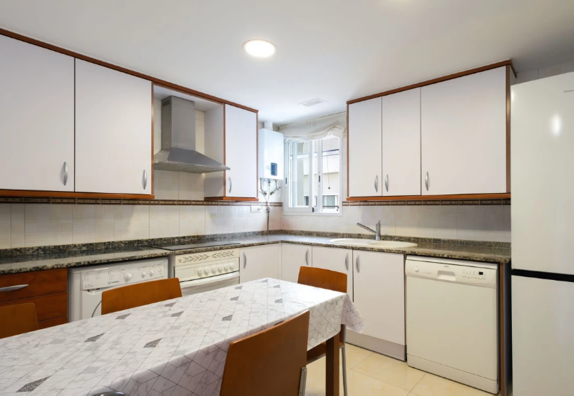 - Virtuvė: Įrengta virtuvė su gausiomis sandėliavimo vietomis, darbo paviršiais bei vieta kasdieniam valgymui. Iš virtuvės taip pat galima patekti į balkoną.