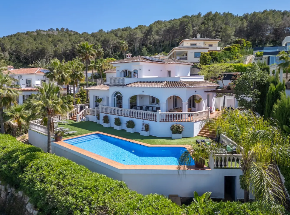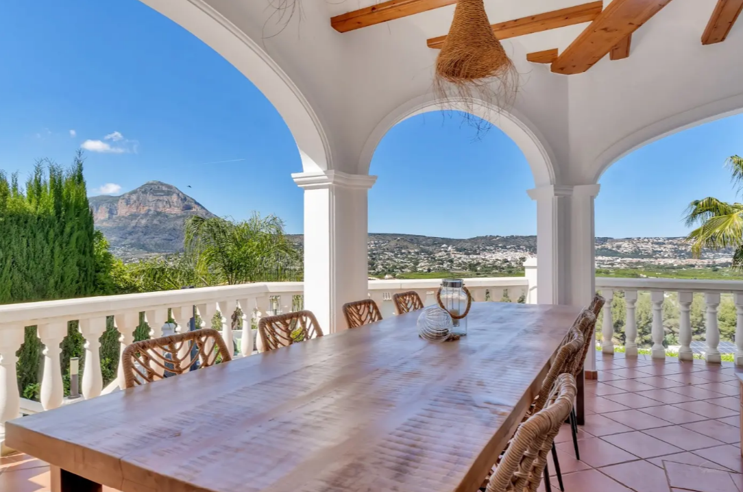 This beautifully maintained traditional-style villa is located in an elevated, peaceful area of Jávea, offering stunning panoramic views of the Mediterranean Sea, the iconic Montgó mountain, and Jávea town.