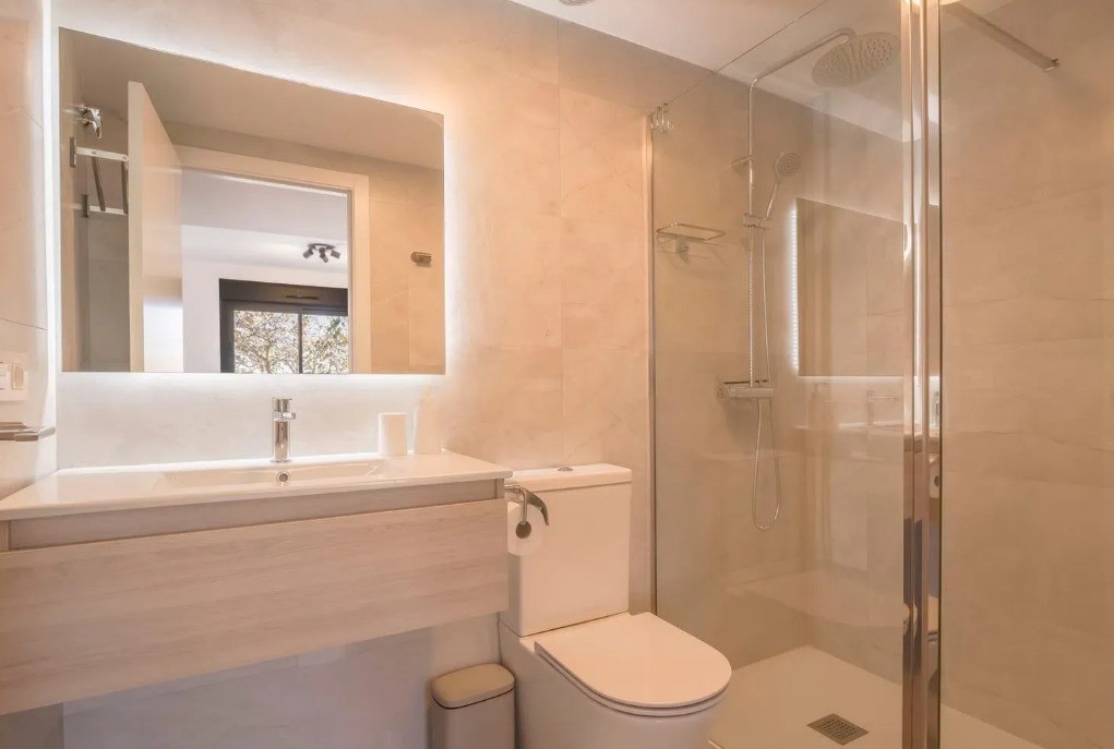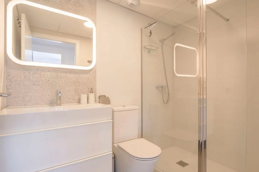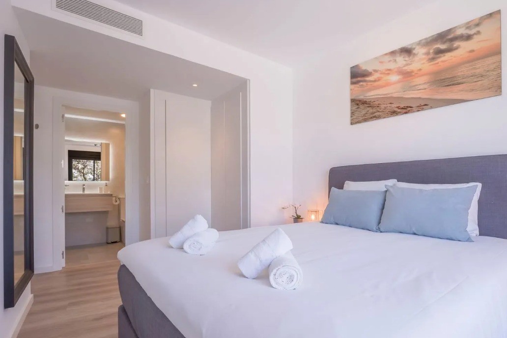74 m² ploto bute yra du erdvūs miegamieji, iš kurių pagrindinis yra tikra poilsio zona su vonios kambariu. Du modernūs vonios kambariai yra su aukštos kokybės apdaila, o atviro plano virtuvė, pilnai įrengta su aukščiausios klasės buitine technika.