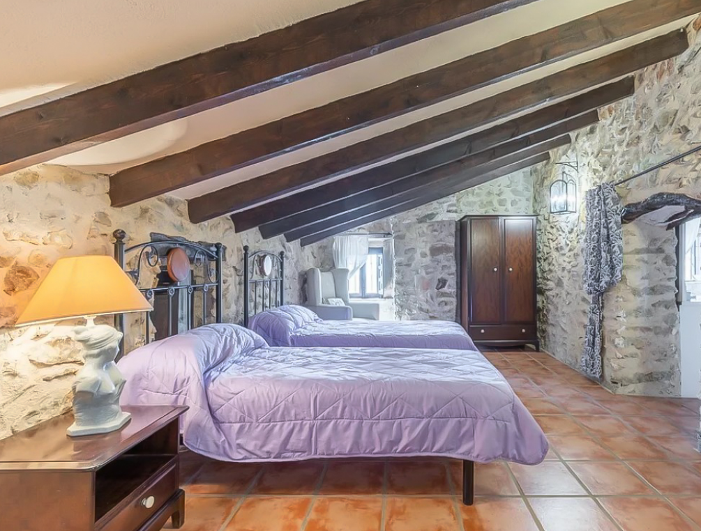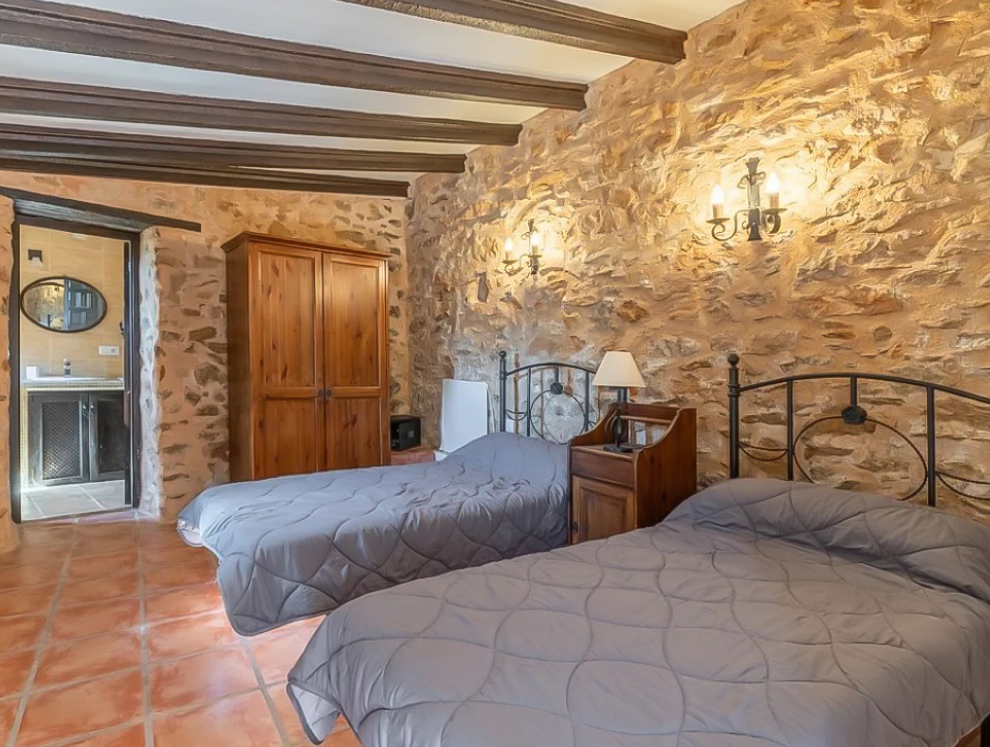 The main house is spread over two floors. On the ground floor you will find two spacious lounges, a fully equipped kitchen, an atmospheric dining room, a guest toilet, three spacious double bedrooms and two comfortable bathrooms. On the upper floor there are a further three spacious bedrooms, each with its own luxury bathroom en suite.