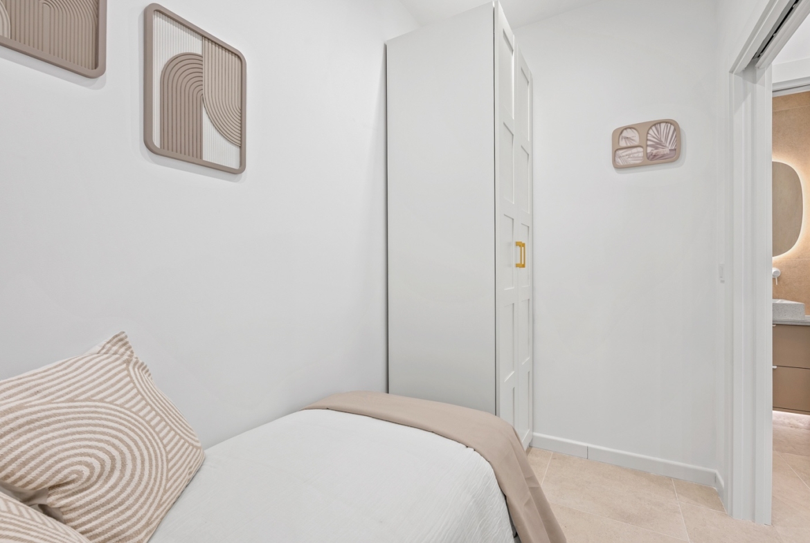 Išplanavimą sudaro 2 miegamieji, pilnas vonios kambarys bei jauki atviro plano svetainė-valgomasis su pilnai įrengta integruota virtuve. Virtuvė sujungta su svetaine, taip sukuriant funkcionalią ir svetingą erdvę, idealiai tinkančią kasdieniam gyvenimui. Svetainė tiesiogiai jungiasi su privačia terasa, o dideli langai užtikrina puikią natūralią šviesą visą dieną.