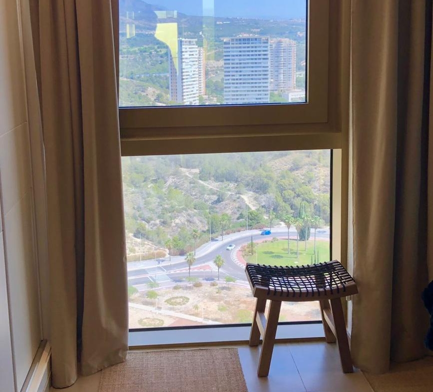 Butą sudaro du erdvūs miegamieji: pagrindinis su vonios kambariu ir tiesioginiu vaizdu į Viduržemio jūrą, o kitas – su įspūdingais kalnų vaizdais. Taip pat yra svetainė su valgomojo zona ir atviro plano virtuve, kuri veda į 23 m² privačią terasą su panoraminiais jūros ir Benidormo panoramos vaizdais.