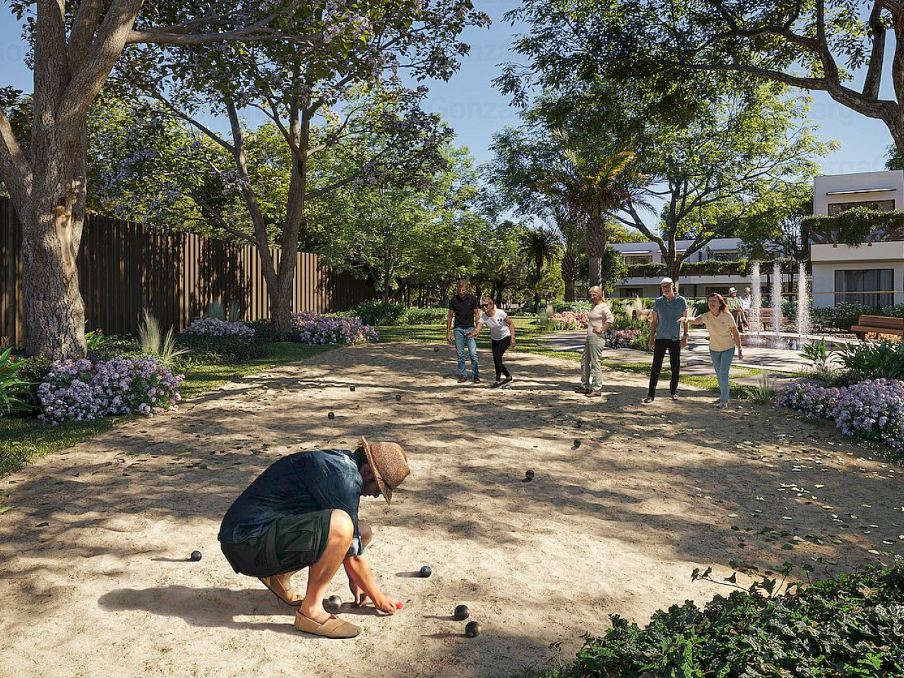 Kompleksas su dideliais žaliaisiais plotais, daugybe komunalinių patalpų (restoranas, sporto salė, medicinos centras…), apsauga ir individualizuotos paslaugos.