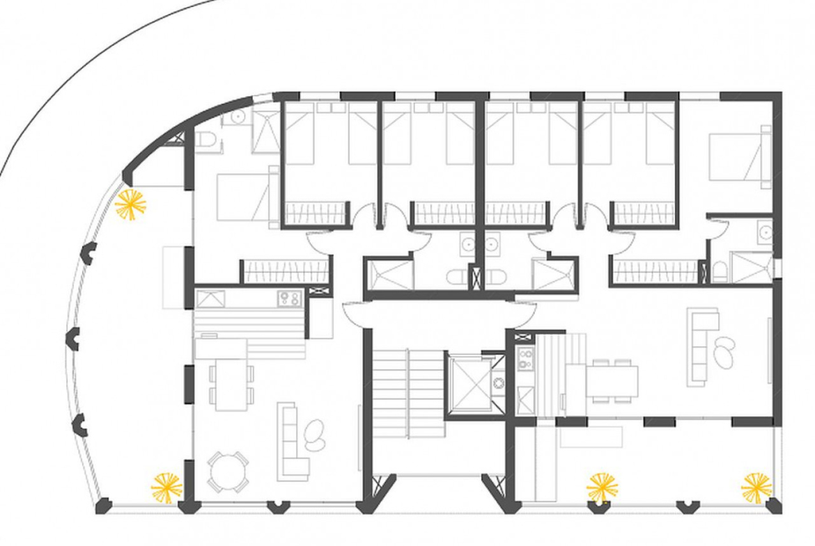 Kompleksas siūlo unikalią galimybę įsigyti pilnai įrengtą butą vos už 300 metrų nuo jūros. Komplekse, sukurtame atsižvelgiant į komfortą ir pelningumą, yra tik 10 išskirtinių turistinių apartamentų, kiekviename iš jų yra 3 miegamieji, 2 vonios kambariai (vienas iš jų – atskirame) ir erdvi terasa su nuostabiu vaizdu į jūrą.