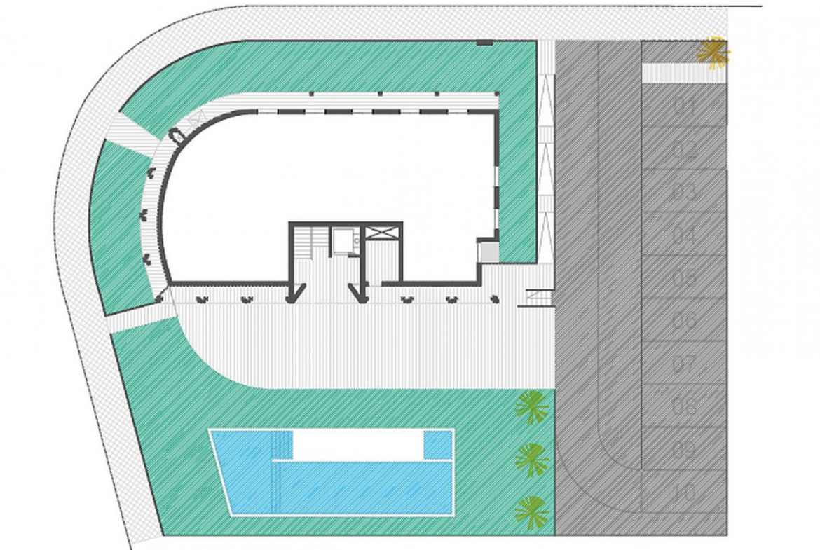 Komplekse yra gražūs bendri sodai, baseinas su sūkurine vonia ir lauko automobilių stovėjimo aikštelė gyventojams.