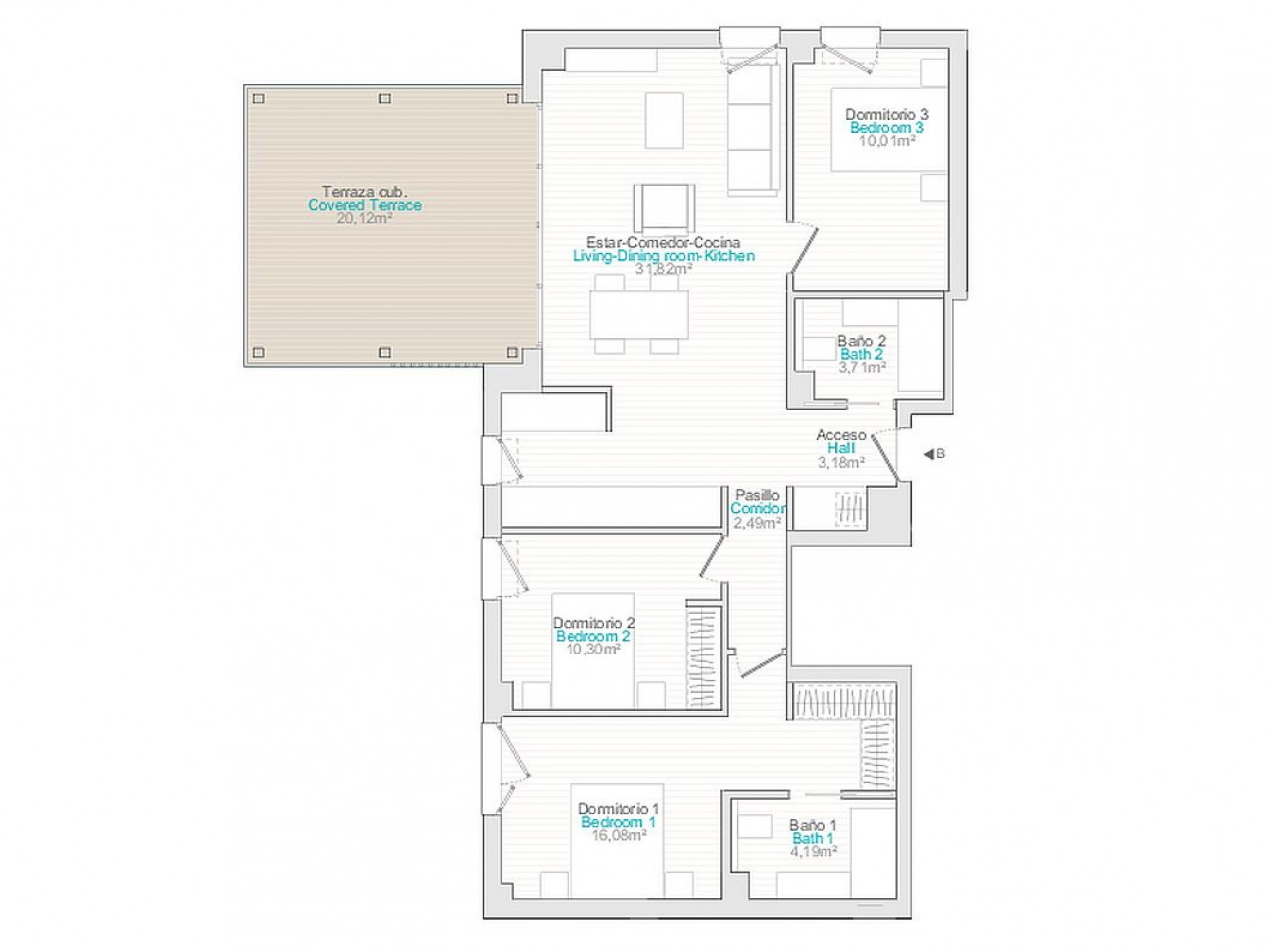 Butai su vienu, dviem ar trim miegamaisiais ir vienu, dviem ar trimis vonios kambariais yra skirtingų dydžių ir skirtingų išplanavimo. Pagrindinis „Talasa“ namų bruožas bus didelės terasos. Dėl reguliarių proporcijų jie yra ideali erdvė gyvenimui. Svetainės sujungimas su šiomis erdviomis terasomis sujungs Jūsų namus kaip gyventi tinkamą erdvę, kurioje interjeras susilieja su eksterjeru. Namai, įrengti aplink svetainę, atsiveria į terasą-miegamąjį.