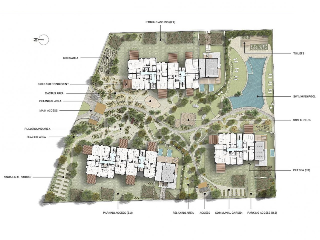 Bendros Talasa Caelus erdvės įkūnija giliai natūralią dvasią. Eidami per įvairias vietas rasite idealias vietas pasivaikščiojimui, sportui ir, svarbiausia, važinėjimui dviračiais. Turėsite šias funkcijas: baseiną ir persirengimo kambarius, sutvarkytą gultų ir skėčių zoną, socialinį klubą, kamuoliukų zoną, vaikų žaidimų aikštelę, miesto sodus, skaityklą, poilsio zoną, naminių gyvūnėlių SPA ir elektrinių dviračių įkrovimo vietą.