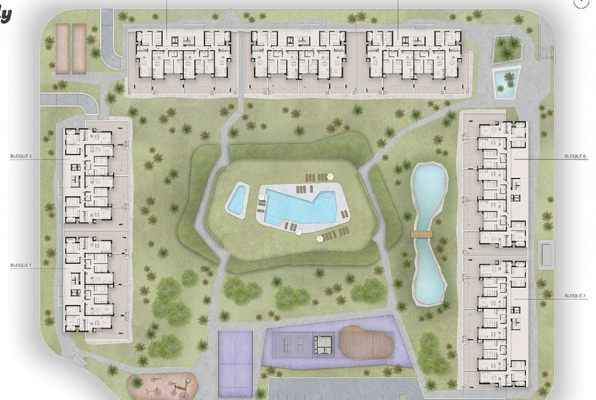 Komplekse įrengtas bendras baseinas su žaliosiomis zonomis, apsuptomis natūralios žolės, palmių ir pasivaikščiojimo aikštelių. Tiems, kurie nori praleisti laiką su šeima ar draugais, įrengta bendra kepsninė, padelio kortai, petankė, lauko treniruoklių zona, lauko tvenkinys ir vaikų žaidimų aikštelė.
