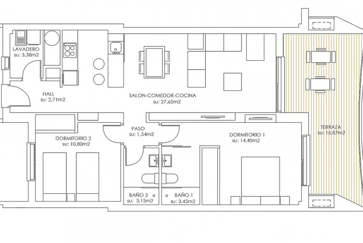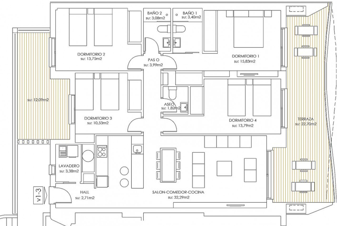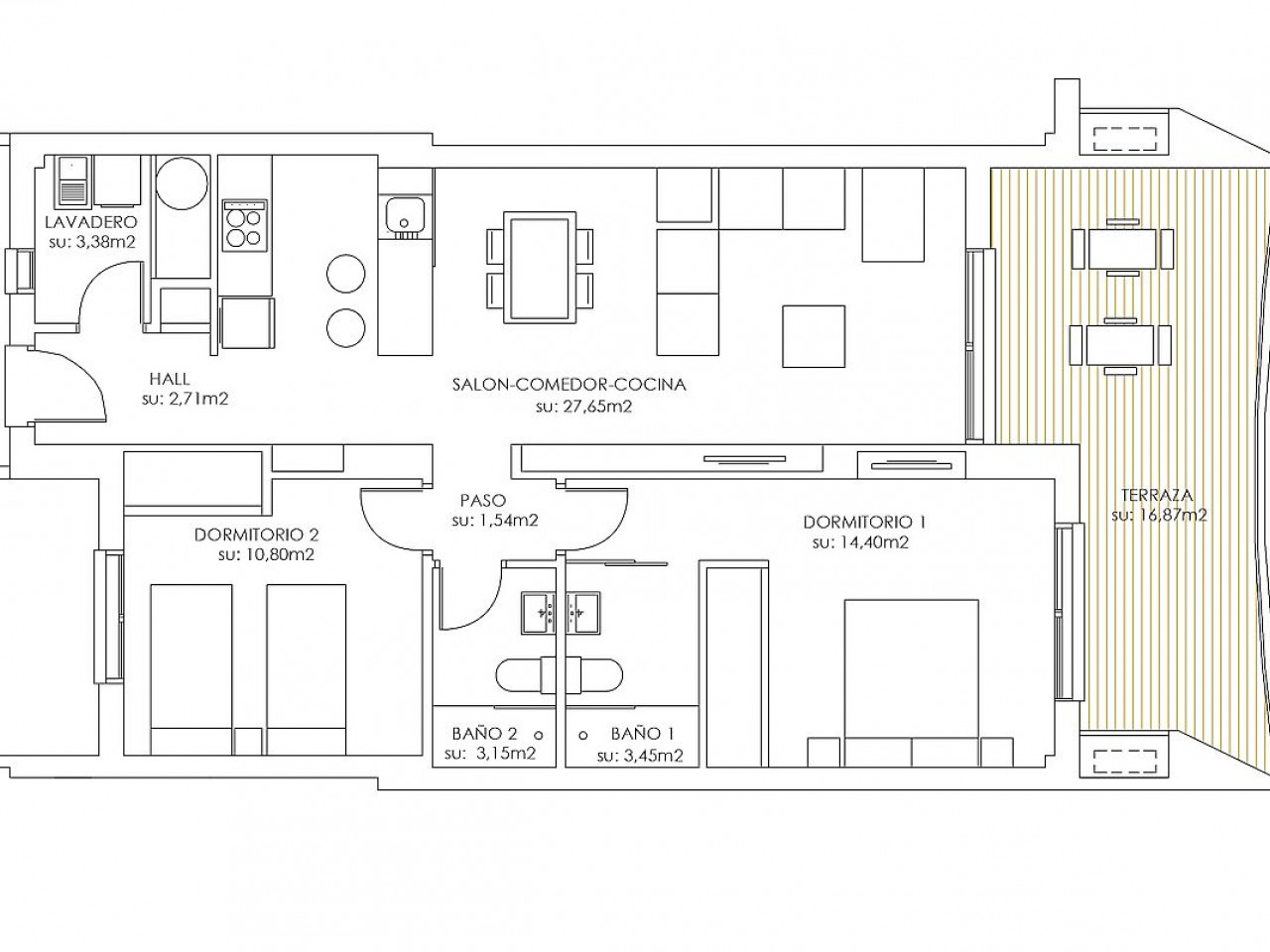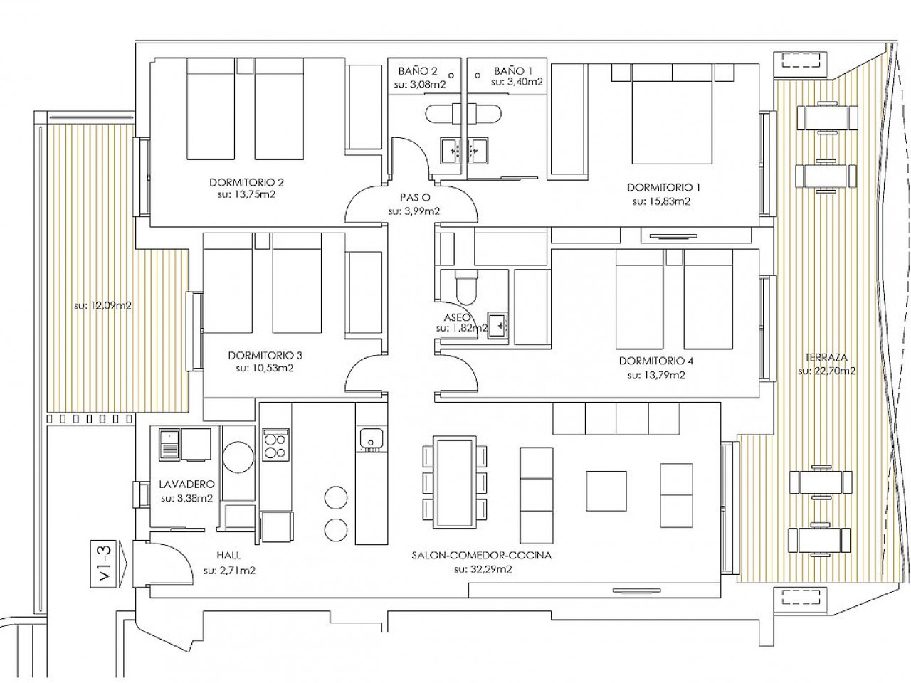 Kompleksą sudaro modernūs apartamentai su didelėmis terasomis, kuriose galėsite rinktis iš dviejų ar trijų miegamųjų ir dviejų vonios kambarių. Viršutiniuose aukštuose yra didelis privatus soliariumas ant stogo.
