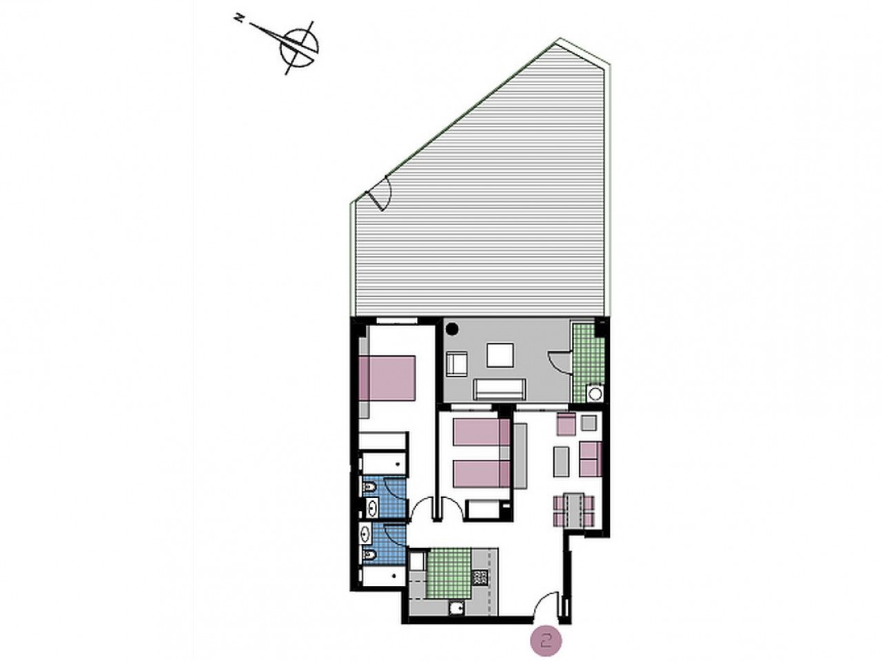 Kiekvienas butas suprojektuotas pagal šiuolaikišką atviro plano išplanavimą, kuris sklandžiai sujungia virtuvę ir svetainę, sukurdamas šviesią ir jaukią atmosferą. Apartamentuose yra du vonios kambariai, iš kurių vienas šalia pagrindinio miegamojo.