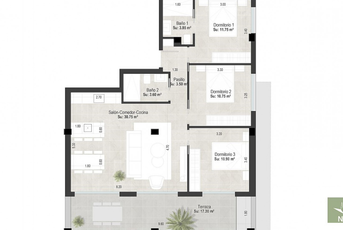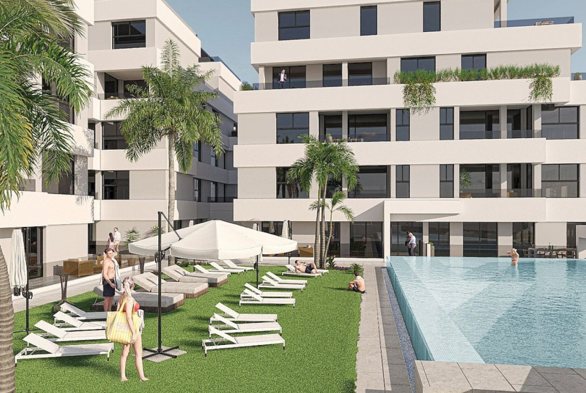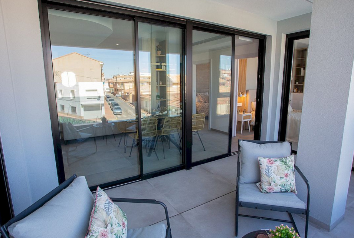 Prabangūs apartamentai San Pedro del Pinatar miesto centre, kuriuos sudaro 2 ir 3 miegamųjų butai su gražia bendra baseino zona.