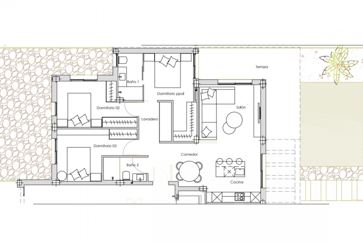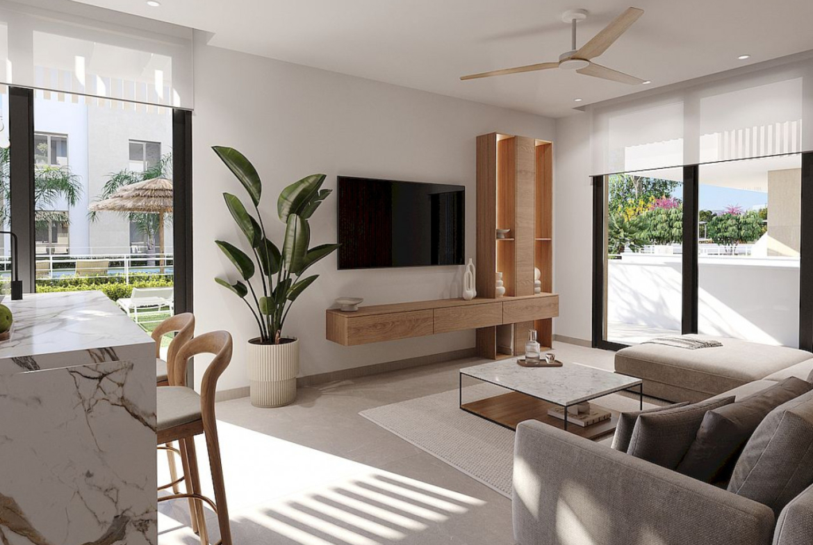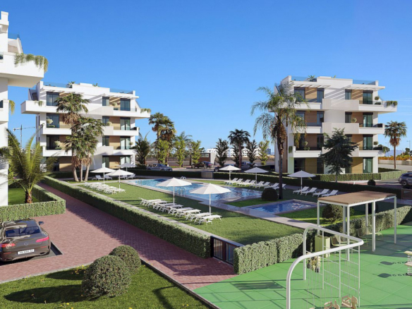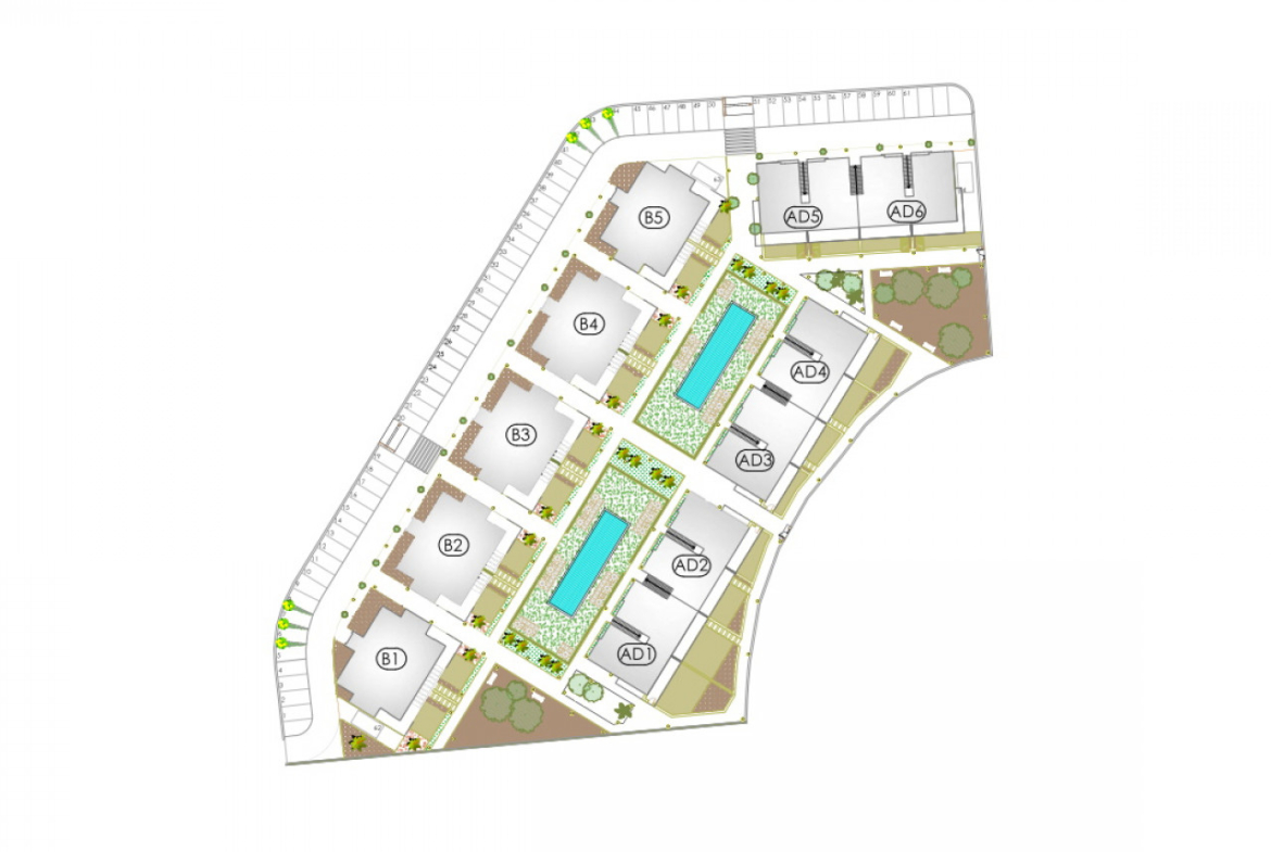 Yra penki blokai po aštuonis apartamentus kiekviename bloke, kuriuose yra 2 bendri baseinai, automobilių stovėjimo aikštelė ir sandėliukas. Apartamentai paskirstyti pirmame aukšte su sodu, antrame ir trečiame aukštuose su terasomis ir ketvirtame aukšte su privačiu soliariumu. Kiekviename aukšte yra po du butus ir liftas.