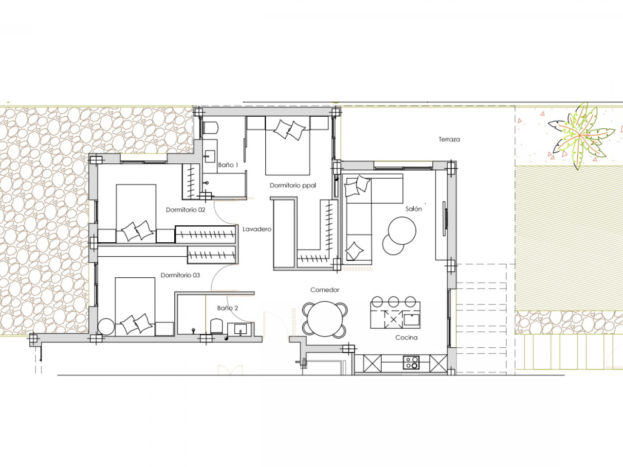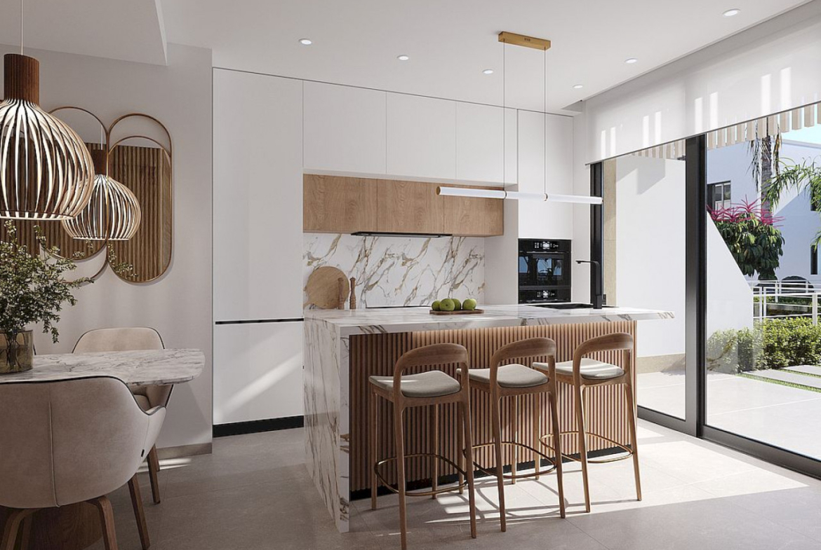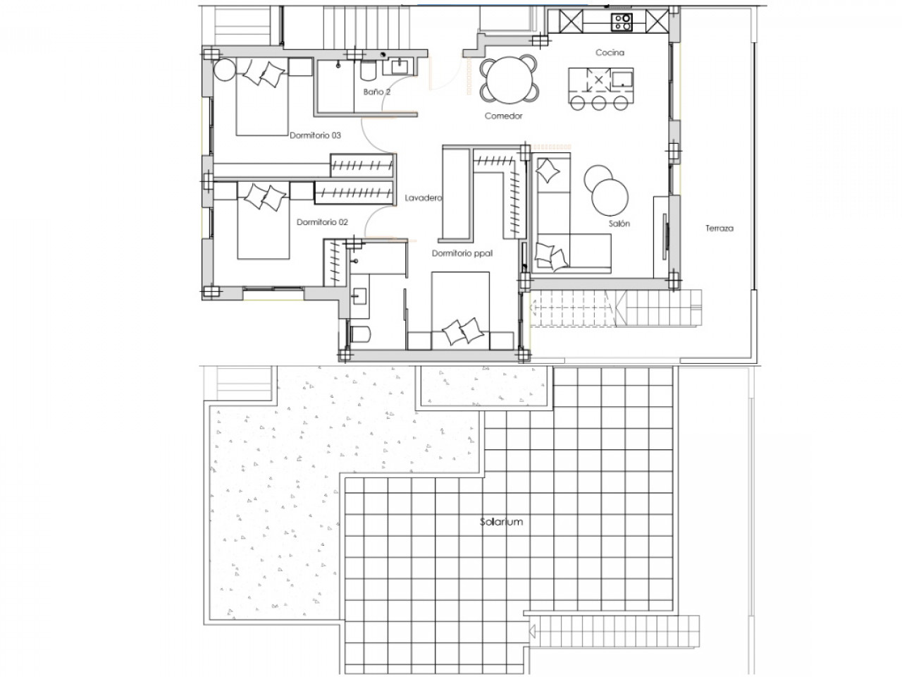 Yra penki blokai po aštuonis apartamentus kiekviename bloke, kuriuose yra 2 bendri baseinai, automobilių stovėjimo aikštelė ir sandėliukas. Apartamentai paskirstyti pirmame aukšte su sodu, antrame ir trečiame aukštuose su terasomis ir ketvirtame aukšte su privačiu soliariumu. Kiekviename aukšte yra po du butus ir liftas.
