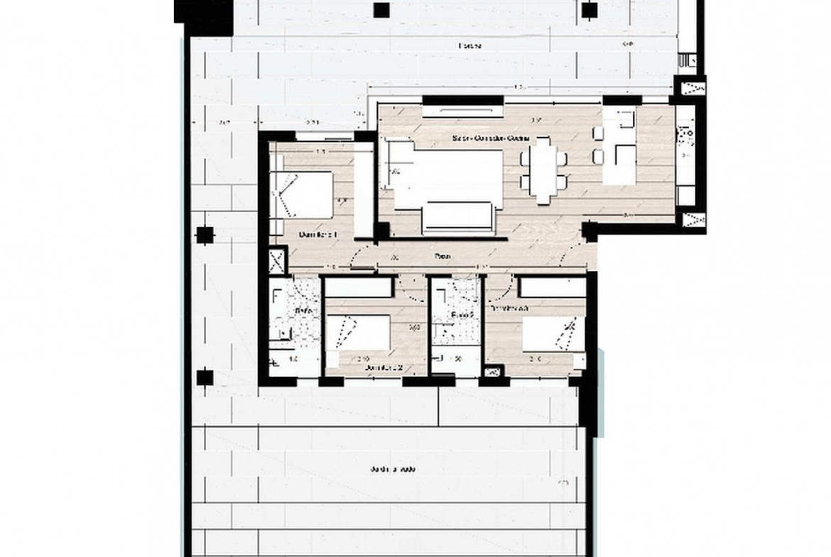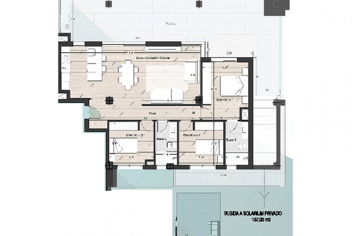 Šie modernaus stiliaus turistiniai apartamentai yra pilnai įrengti ir turintys veiklos licenciją nuomai, juos sudaro 8 butai, kuriuose yra 3 miegamieji ir 2 vonios kambariai su didele sodo zona, terasa arba soliariumu.