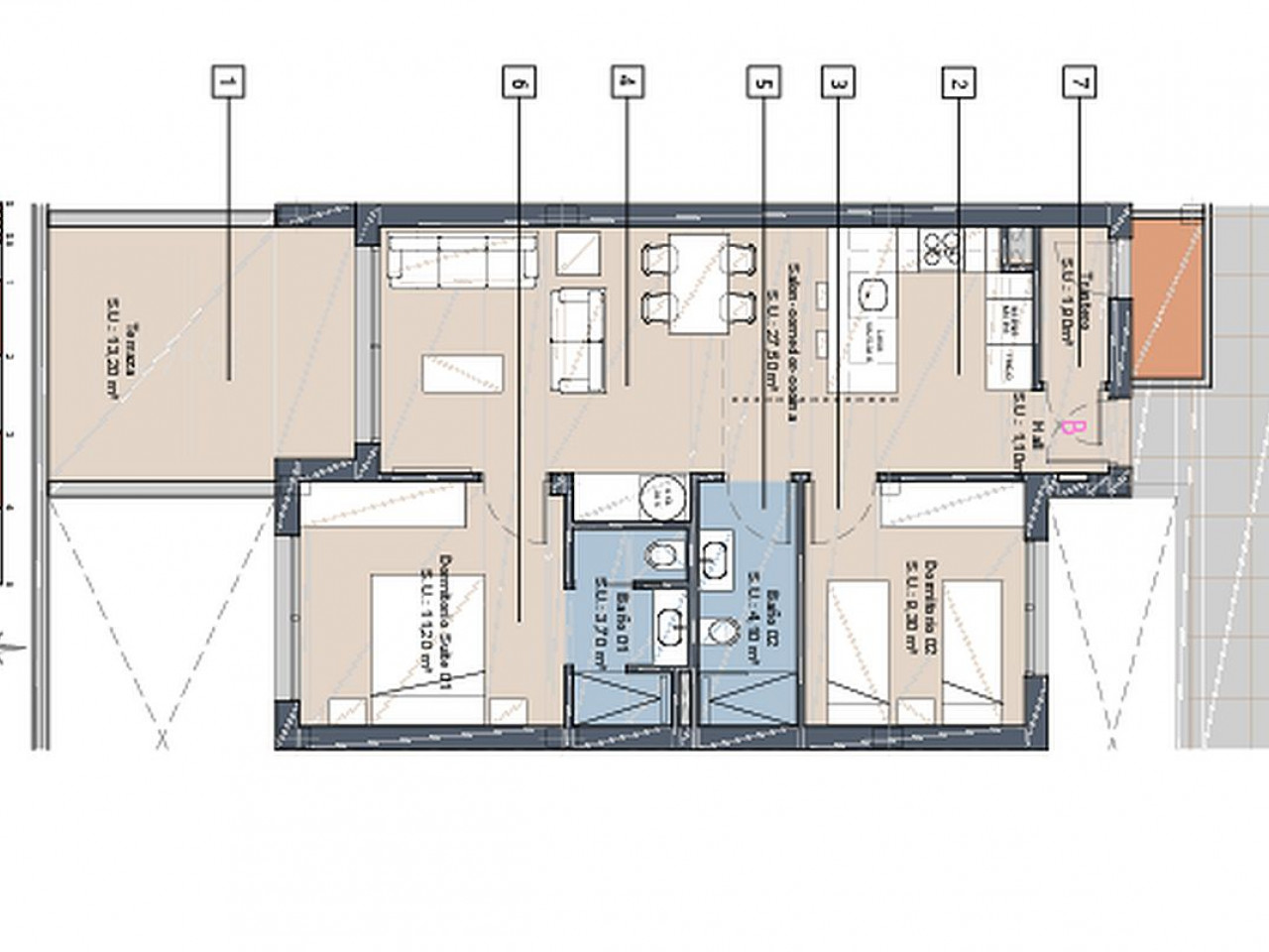 Kompleksą sudaro 30 butų su 2 ir 3 miegamaisiais, kuriuose dera modernus dizainas, kokybė ir funkcionalumas. Iš neprilygstamos vietos atsiveria gražūs golfo ir Mar Menor jūros vaizdai. Yra 3 skirtingi pastatai, iš kurių dviejuose yra pirmame ir viršutiniame aukšte įrengti apartamentai, o trečiame – trijų aukštų ir liftas.