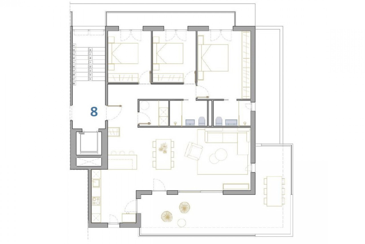 Butai ir penthausai su 2 ir 3 miegamaisiais, 2 vonios kambariais, atviro plano virtuve su svetaine, didelėmis terasomis, įmontuotomis spintomis, pilnai įrengtais vonios kambariais, terasomis. Pirmame aukšte esantys apartamentai turi privatų sodą, o viršutiniame aukšte esančiuose penthausuosr yra privatus soliariumas. Kiekvienam būstui priklauso požeminė automobilių stovėjimo aikštelė su sandėliuku.