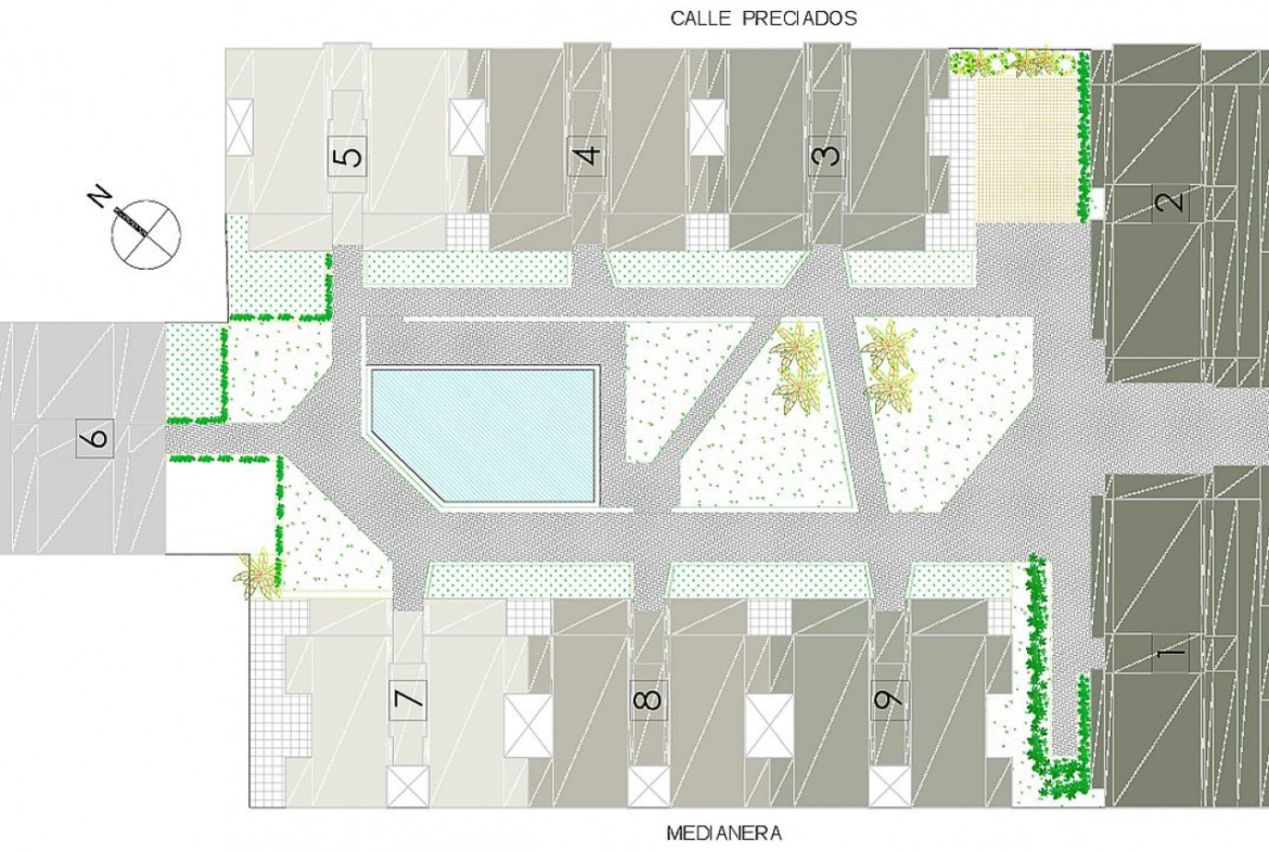 Šiame uždarame komplekse yra bendras baseinas ir didelė žalia zona su sodais.