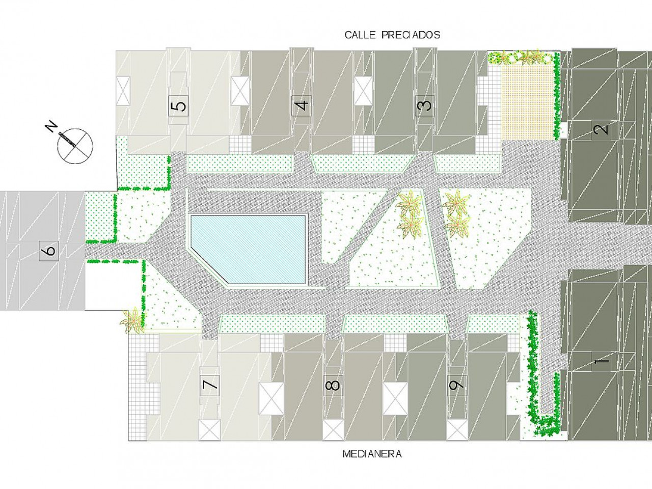 Šiame uždarame komplekse yra bendras baseinas ir didelė žalia zona su sodais.