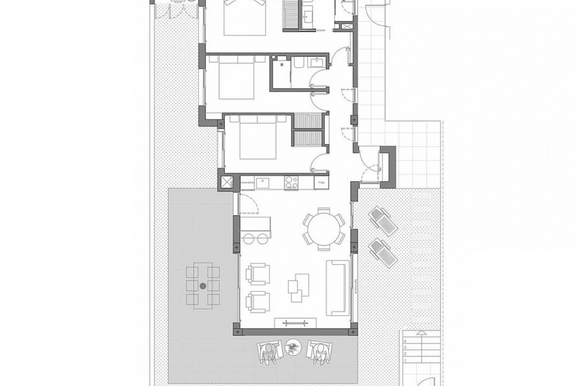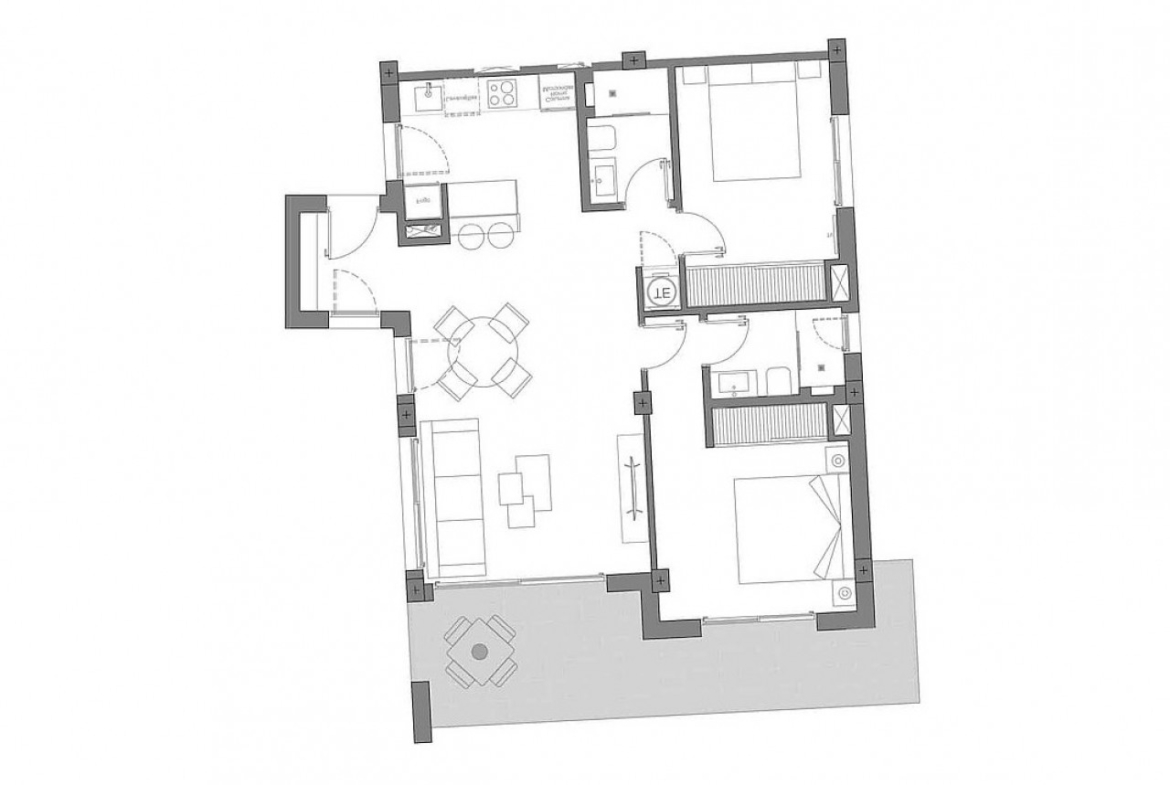 Apartamentų interjeras yra atviras, funkcionalus ir žavus, siekiant maksimaliai išnaudoti natūralią šviesą ir erdvumą. Mėgaukitės didelėmis terasomis, puikiai tinkančiomis degintis saulėje, atsipalaiduoti ar grožėtis vaizdais. Kiekviename name yra automobilių stovėjimo vieta ir sandėliavimo patalpa, užtikrinanti maksimalų komfortą ir funkcionalumą kasdieniam gyvenimui.
