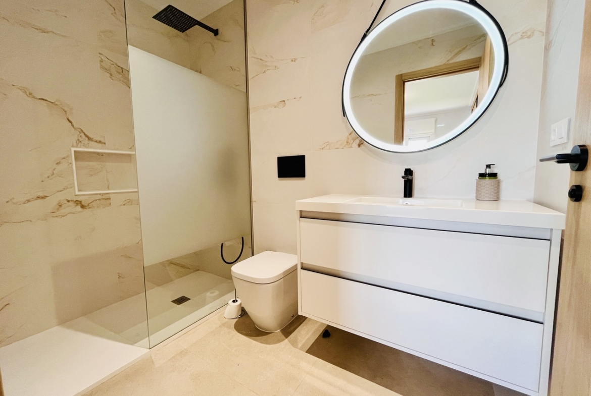 Butas yra puikiai prižiūrimoje uždaroje bendruomenėje, kurioje rasite bendrą baseiną, vidaus šildomą baseiną, vaikų žaidimų aikštelę ir mini golfo zoną – viską, ko reikia tiek nuolatiniam gyvenimui, tiek nepamirštamoms atostogoms. Iš buto atsiveria nuostabūs vaizdai į netoliese esančius druskos ežerus, kurie sukuria ramų ir vaizdingą foną, puikiai tinkantį ramiems saulėlydžiams ir gamtos mylėtojams. Priklauso privati vieta garaže, o iki nuostabių Guardamar smėlio paplūdimių vos 11 km, o iki Alikantės oro uosto – tik 25 minutės automobiliu. Tai išskirtiniai, iš karto įsikelti tinkantys namai saulėje, apsupti gamtos, nuostabių vaizdų ir puikios vietinės infrastruktūros.