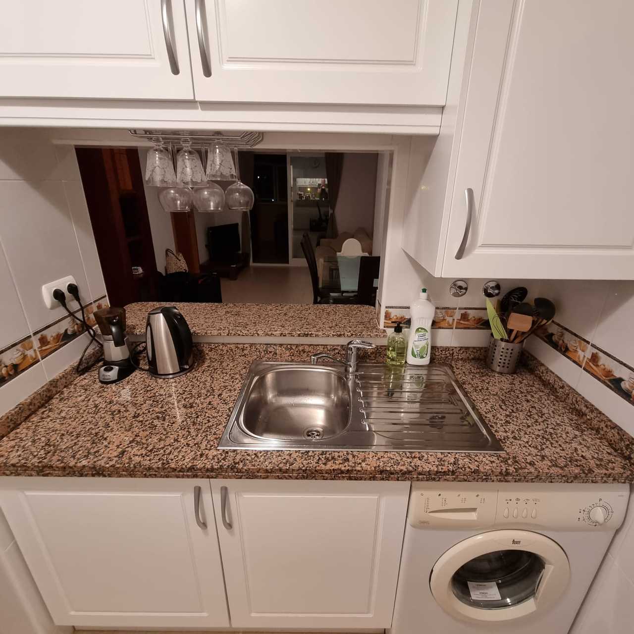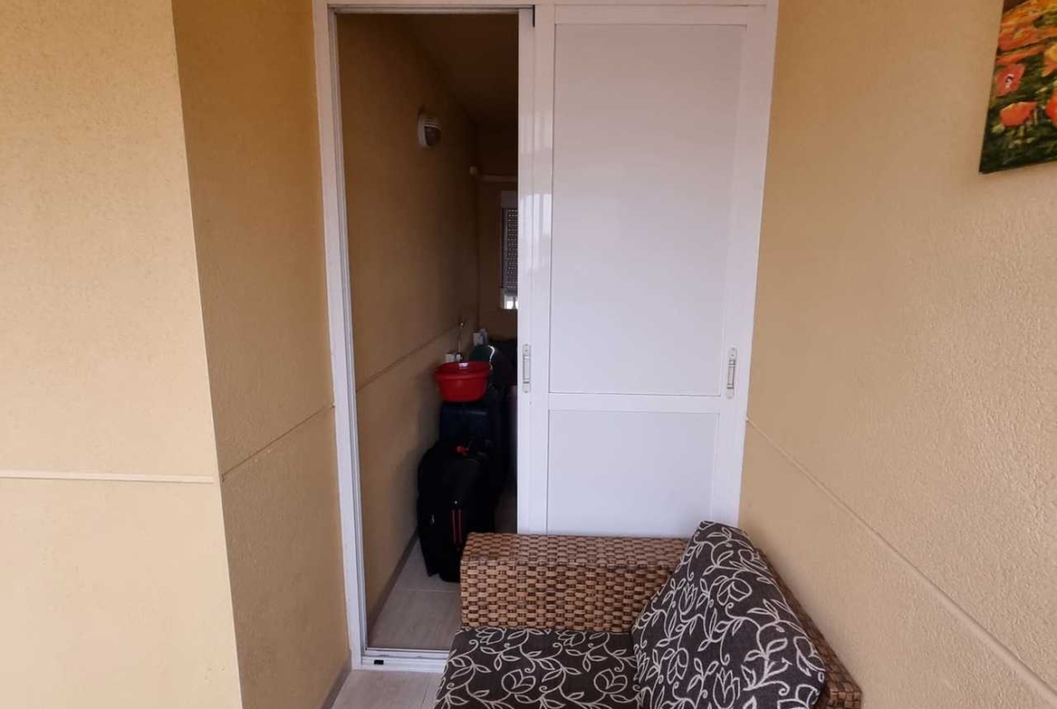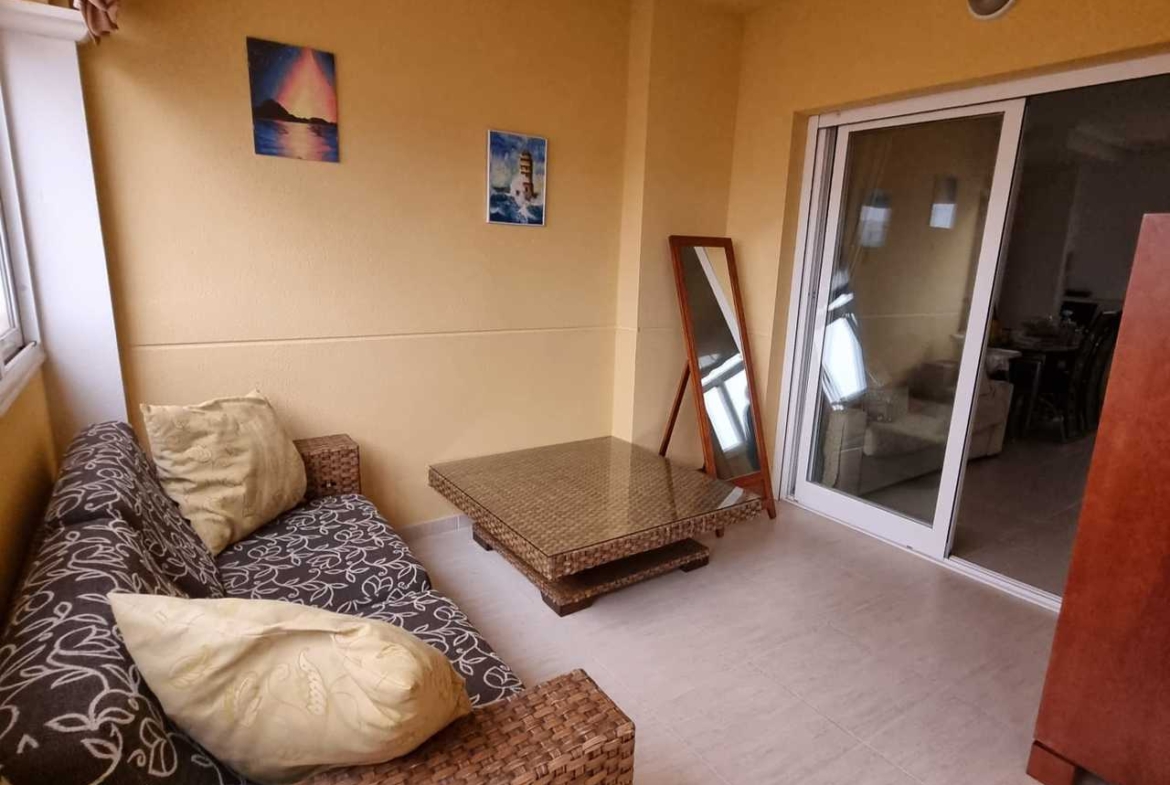Urbanizaciją sudaro 4 namai, sujungti bendra žaliąja zona, baseinu ir atvira automobilių stovėjimo aikštele – visa privati teritorija aptverta, patekti galima tik su raktu. Didelis baseinas turi vaikų zoną, 2 dušus, yra aptvertas nuo žaliosios zonos mažų vaikų saugumui, dirba gelbėtojas. Torremar IV pastatytas 2008 m., name yra 3 liftai ir domofonas. Butas puikios būklės, niekada nenuomotas, vienas savininkas nuo namo pastatymo, antrame aukšte, bendras plotas 75 kv. m: uždara terasa, virtuvė-svetainė, du miegamieji, 2 vonios kambariai (viename – praustuvas, dušas, tualetas, kitame – praustuvas, vonia, bide, tualetas). Pilnai įrengta virtuvė su akmens stalviršiu (boileris, skalbimo mašina, gartraukis, kaitlentė, orkaitė, šaldytuvas, mikrobangų krosnelė, virdulys, kavos aparatas, skrudintuvas, sulčiaspaudė, garintuvas, indai ir t.t.). Du oro kondicionieriai, du televizoriai. Mediniai baldai. Terasa įstiklinta. Buto ir terasos langai orientuoti į dvi puses (į gatvę ir į žaliąją zoną), tolumoje matyti jūra.